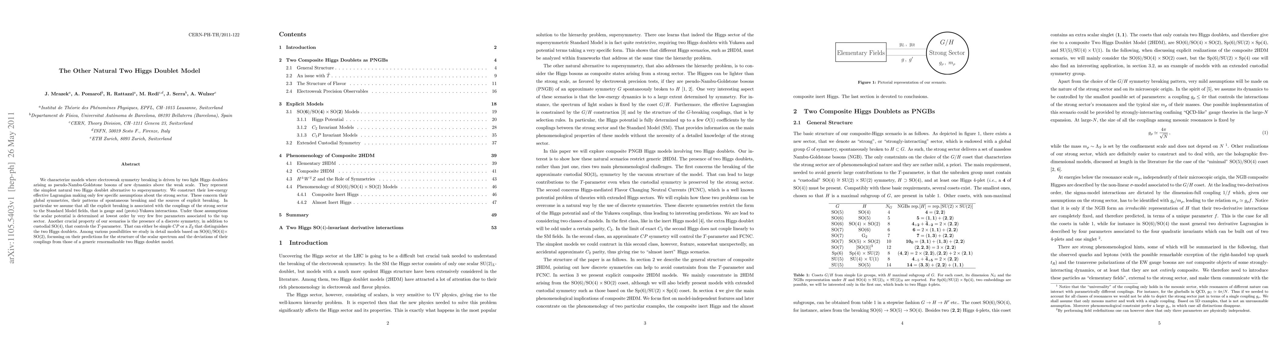 We characterize models where electroweak symmetry breaking is driven by two light Higgs doublets arising as pseudo-Nambu-Goldstone bosons of new dynamics above the weak scale. They represent the simplest natural two Higgs doublet alternative to supersymmetry. We construct their low-energy effective Lagrangian making only few specific assumptions about the strong sector. These concern their global symmetries, their patterns of spontaneous breaking and the sources of explicit breaking. In particular we assume that all the explicit breaking is associated with the couplings of the strong sector to the Standard Model fields, that is gauge and (proto)-Yukawa interactions. Under those assumptions the scalar potential is determined at lowest order by very few free parameters associated to the top sector. Another crucial property of our scenarios is the presence of a discrete symmetry, in addition to custodial SO(4), that controls the $T$-parameter. That can either be simple CP or a $Z_2$ that distinguishes the two Higgs doublets. Among various possibilities we study in detail models based on SO(6)/SO(4)$\times$ SO(2), focussing on their predictions for the structure of the scalar spectrum and the deviations of their couplings from those of a generic renormalizable two Higgs doublet model.