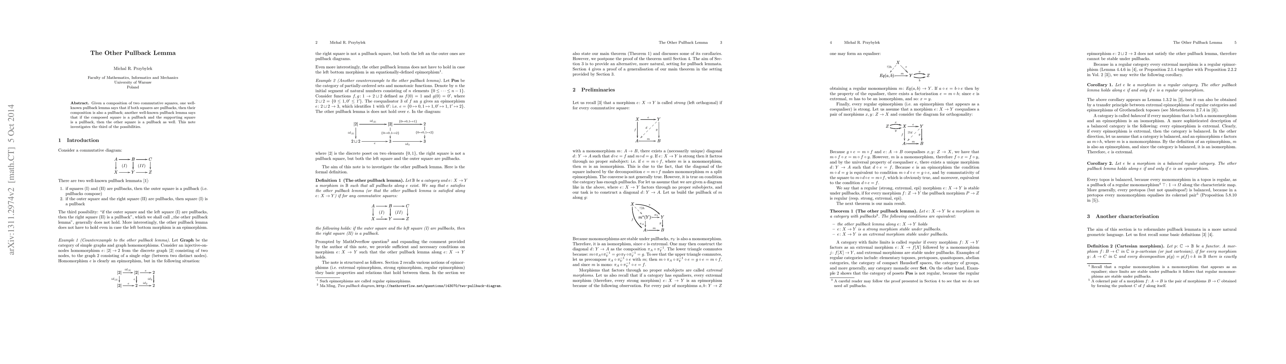 This paper explores a lesser-known aspect of pullback lemmas in category theory, specifically examining the case where a composition of two commutative squares is a pullback, and one of the original squares is a pullback. It investigates under what conditions the other original square also becomes a pullback.