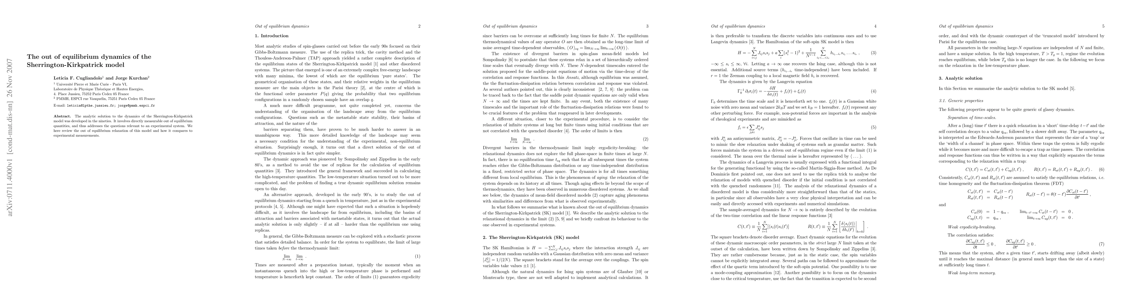 This paper reviews the analytical solution for the dynamics of the Sherrington-Kirkpatrick model, focusing on its out-of-equilibrium relaxation and comparing theoretical predictions with experimental measurements. The analysis highlights the model's relevance to real-world experimental systems.