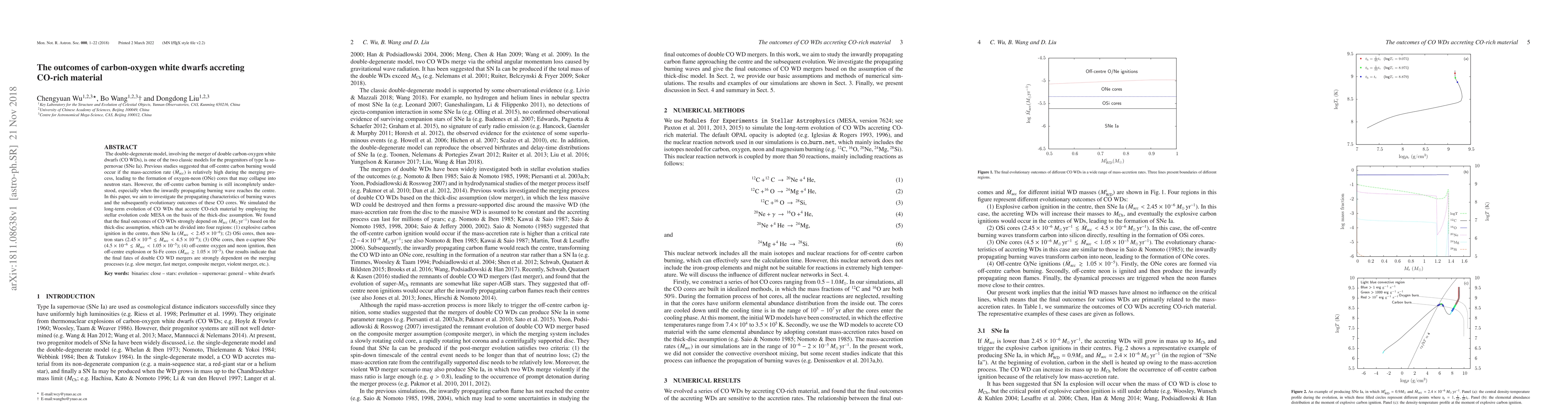 The study employed the MESA stellar evolution code to simulate the long-term evolution of carbon-oxygen white dwarfs (CO WDs) accreting CO-rich material, based on the thick-disc assumption.