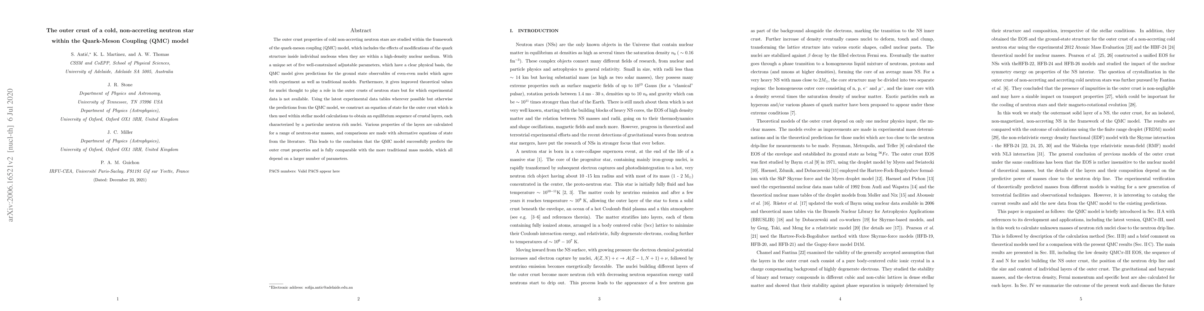 This paper investigates the outer crust properties of cold, non-accreting neutron stars using the Quark-Meson Coupling (QMC) model, which modifies the quark structure within nucleons in high-density nuclear media. The study finds that the QMC model accurately predicts the outer crust's equilibrium sequence and properties, comparable to traditional mass models, despite requiring fewer parameters.