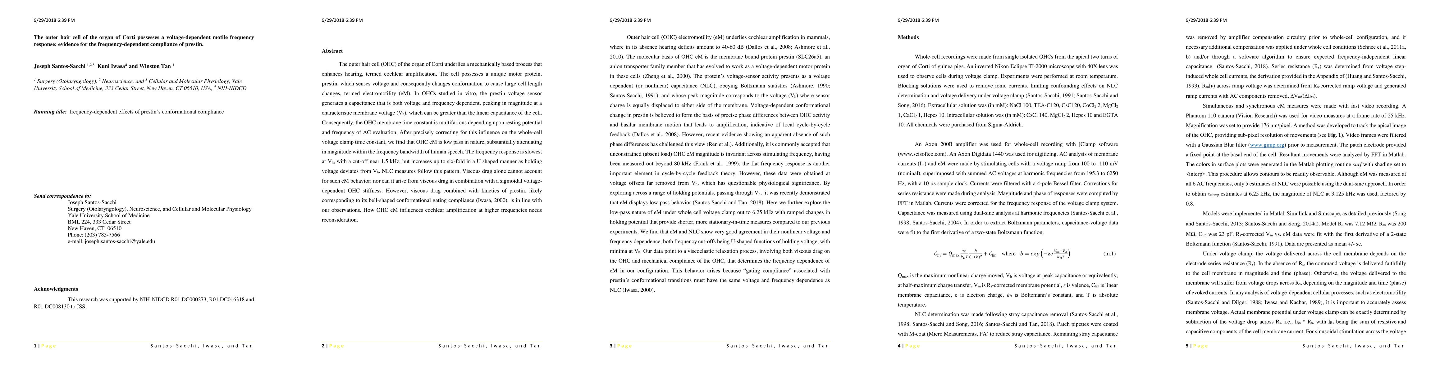 This paper investigates the voltage-dependent motility of outer hair cells (OHCs) in the organ of Corti, revealing that prestin, a unique motor protein, exhibits a frequency-dependent compliance. The study finds that OHC electromotility is a low-pass filter, significantly attenuating within the human speech frequency range, suggesting a reconsideration of how OHCs contribute to cochlear amplification at higher frequencies.