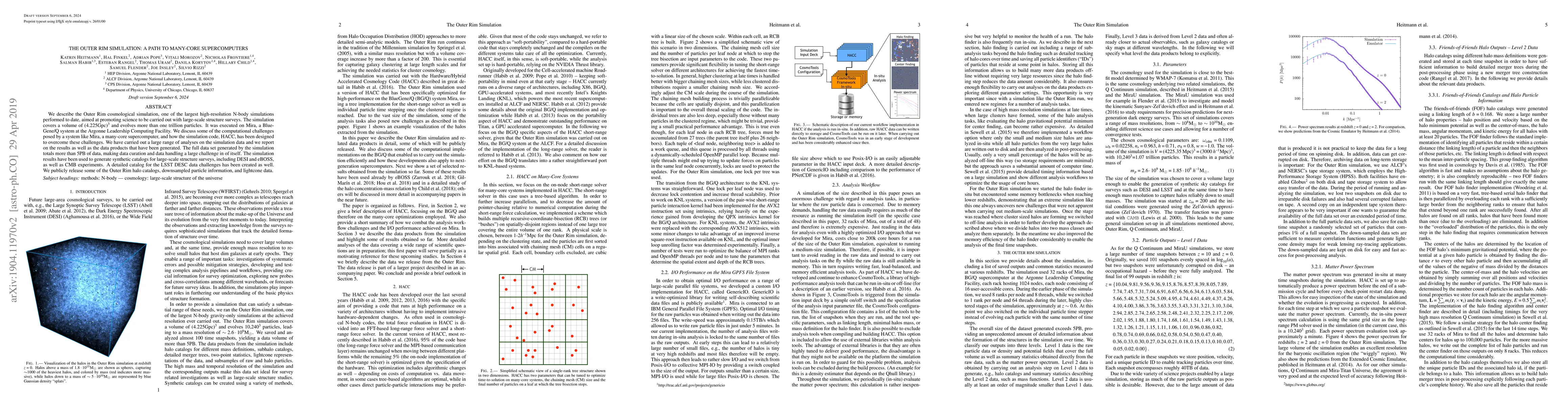 A large-scale N-body simulation called Outer Rim was completed on a many-core supercomputer, producing over 5PB of data used to generate synthetic catalogs for large-scale structure surveys.