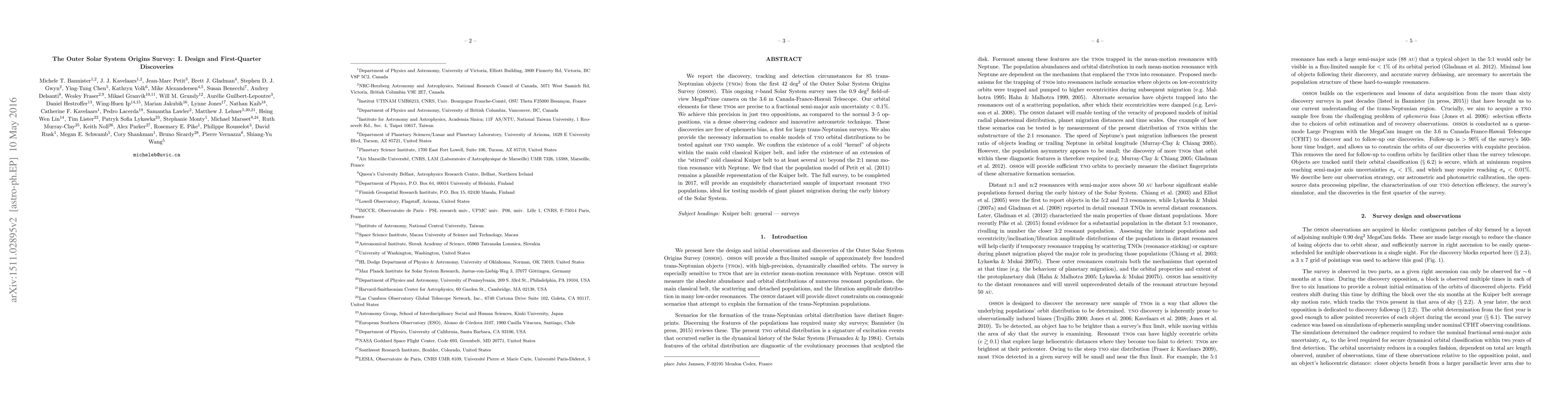 The OSSOS survey discovered 85 trans-Neptunian objects (TNOs) using the Canada-France-Hawaii Telescope, achieving precise orbital elements in just two oppositions. The survey confirms the existence of a cold Kuiper belt "kernel" and extends the "stirred" belt beyond the 2:1 Neptune resonance.