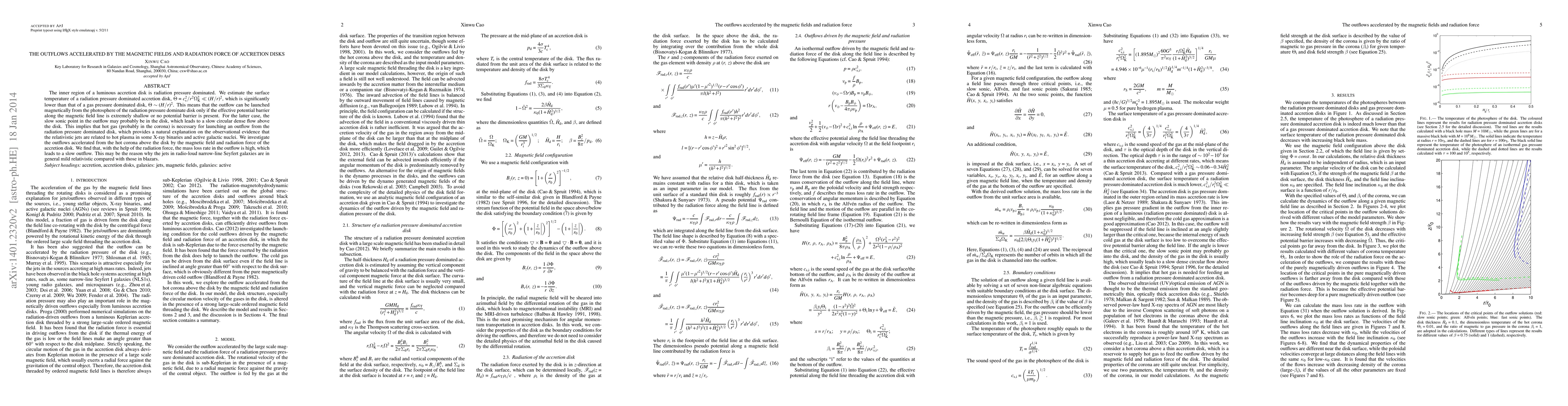 The inner region of a luminous accretion disk is radiation pressure dominated. We estimate the surface temperature of a radiation pressure dominated accretion disk, \Theta=(c_s/r\Omega_K)^2<<(H/r)^2, which is significantly lower than that of a gas pressure dominated disk, \Theta (H/r)^2. This means that the outflow can be launched magnetically from the photosphere of the radiation pressure dominate disk only if the effective potential barrier along the magnetic field line is extremely shallow or no potential barrier is present. For the latter case, the slow sonic point in the outflow may probably be in the disk, which leads to a slow circular dense flow above the disk. This implies that hot gas (probably in the corona) is necessary for launching a jet from the radiation pressure dominated disk, which provides a natural explanation on the observational evidence that the relativistic jets are related to hot plasma in some X-ray binaries and active galactic nuclei. We investigate the outflows accelerated from the hot corona above the disk by the magnetic field and radiation force of the accretion disk. We find that, with the help of the radiation force, the mass loss rate in the outflow is high, which leads to a slow outflow. This may be the reason why the jets in radio-loud narrow-line Seyfert galaxies are in general mild relativistic compared with those in blazars.