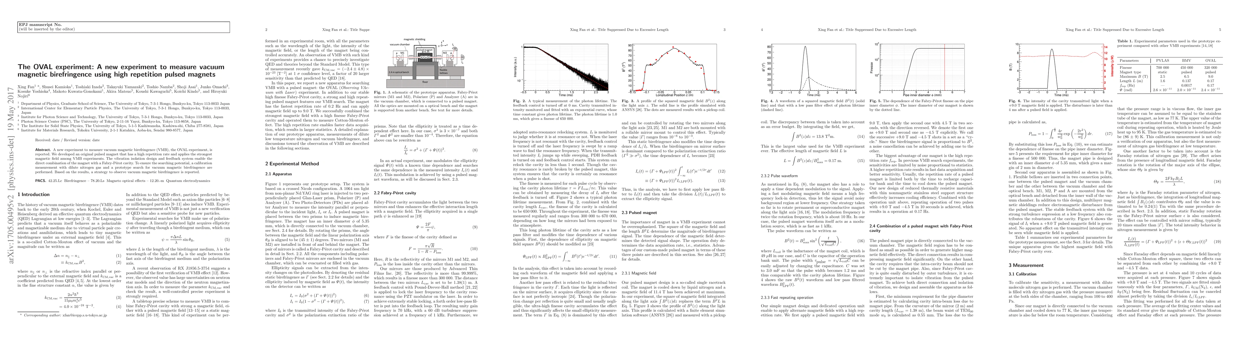 The OVAL experiment aims to measure vacuum magnetic birefringence using a high repetition pulsed magnet with the strongest magnetic field. The experiment includes a vibration isolation design and a feedback system, enabling a Fabry-Pérot cavity combination, and has demonstrated its potential through calibration and initial searches.