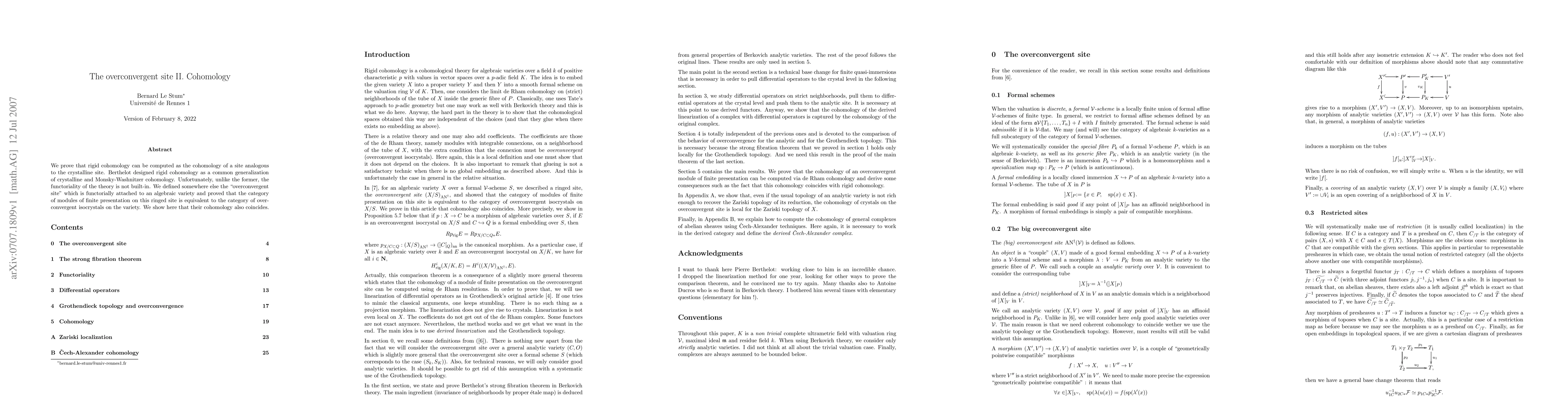We prove that rigid cohomology can be computed as the cohomology of a site analogous to the crystalline site. Berthelot designed rigid cohomology as a common generalization of crystalline and Monsky-Washnitzer cohomology. Unfortunately, unlike the former, the functoriality of the theory is not built-in. We defined somewhere else the "overconvergent site" which is functorially attached to an algebraic variety and proved that the category of modules of finite presentation on this ringed site is equivalent to the category of over- convergent isocrystals on the variety. We show here that their cohomology also coincides.