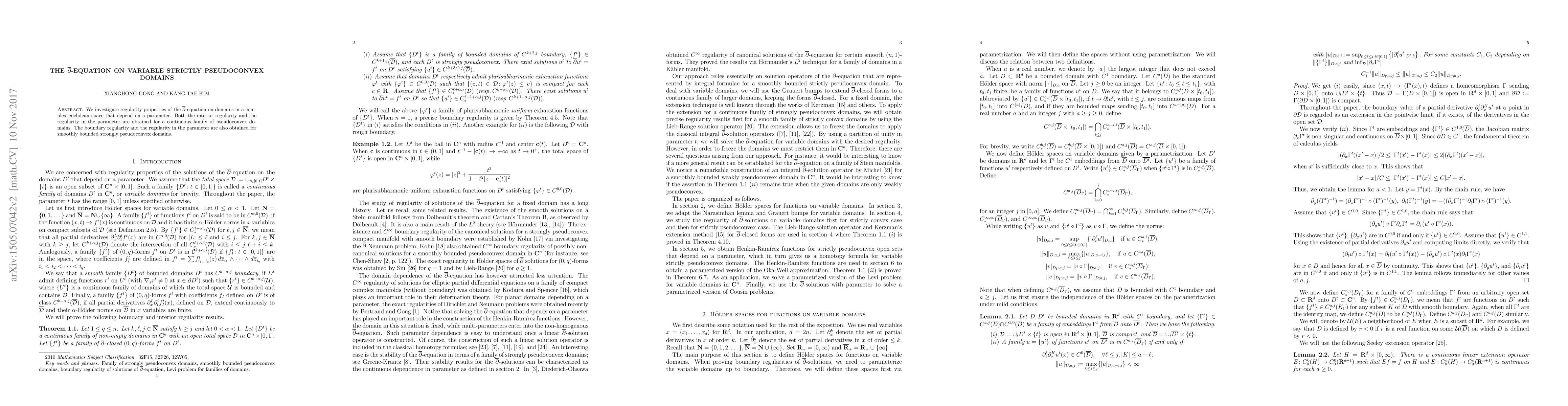 This paper explores the regularity of the $\overline{\partial}$-equation on variable pseudoconvex domains in complex Euclidean space, achieving results for both interior and parameter regularity for continuous families of pseudoconvex domains, and boundary and parameter regularity for smoothly bounded strongly pseudoconvex domains.
