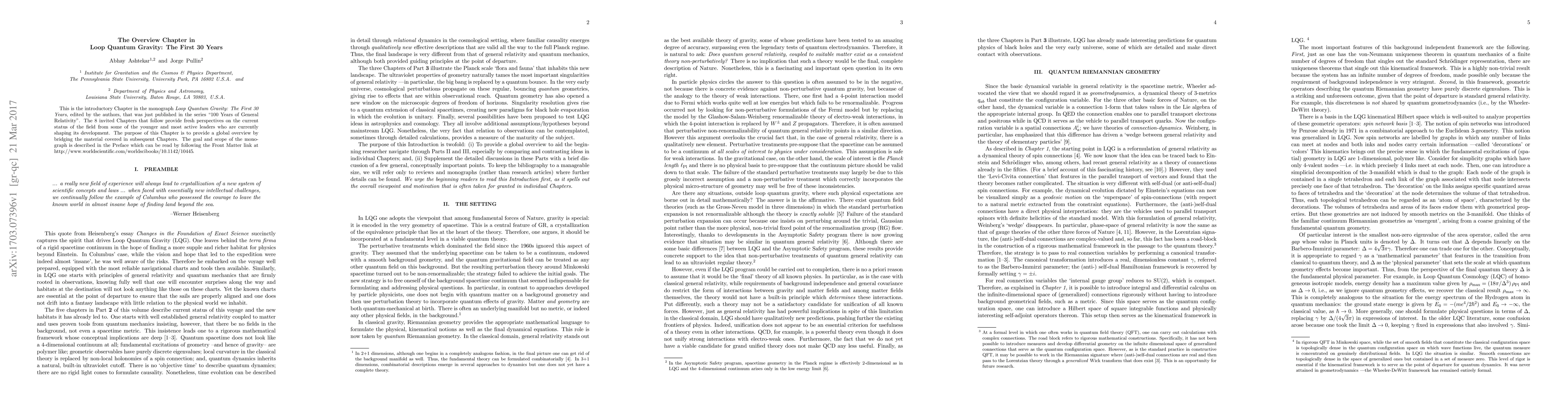This is the introductory Chapter in the monograph Loop Quantum Gravity: The First 30 Years, edited by the authors, that was just published in the series "100 Years of General Relativity. The 8 invited Chapters that follow provide fresh perspectives on the current status of the field from some of the younger and most active leaders who are currently shaping its development. The purpose of this Chapter is to provide a global overview by bridging the material covered in subsequent Chapters. The goal and scope of the monograph is described in the Preface which can be read by following the Front Matter link at the website listed below.