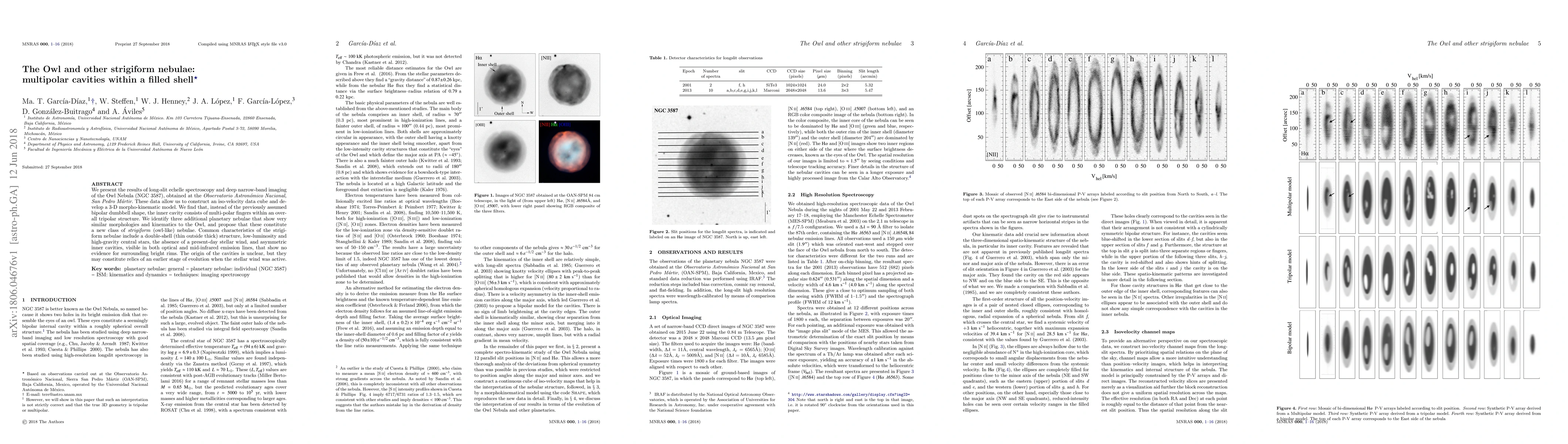 We present the results of long-slit echelle spectroscopy and deep narrow-band imaging of the Owl Nebula (NGC 3587), obtained at the \textit{Observatorio Astron\'omico Nacional, San Pedro M\'artir}. These data allow us to construct an iso-velocity data cube and develop a 3-D morpho-kinematic model. We find that, instead of the previously assumed bipolar dumbbell shape, the inner cavity consists of multi-polar fingers within an overall tripolar structure. We identify three additional planetary nebulae that show very similar morphologies and kinematics to the Owl, and propose that these constitute a new class of \textit{strigiform} (owl-like) nebulae. Common characteristics of the strigiform nebulae include a double-shell (thin outside thick) structure, low-luminosity and high-gravity central stars, the absence of a present-day stellar wind, and asymmetric inner cavities, visible in both optical and mid-infrared emission lines, that show no evidence for surrounding bright rims. The origin of the cavities is unclear, but they may constitute relics of an earlier stage of evolution when the stellar wind was active.
