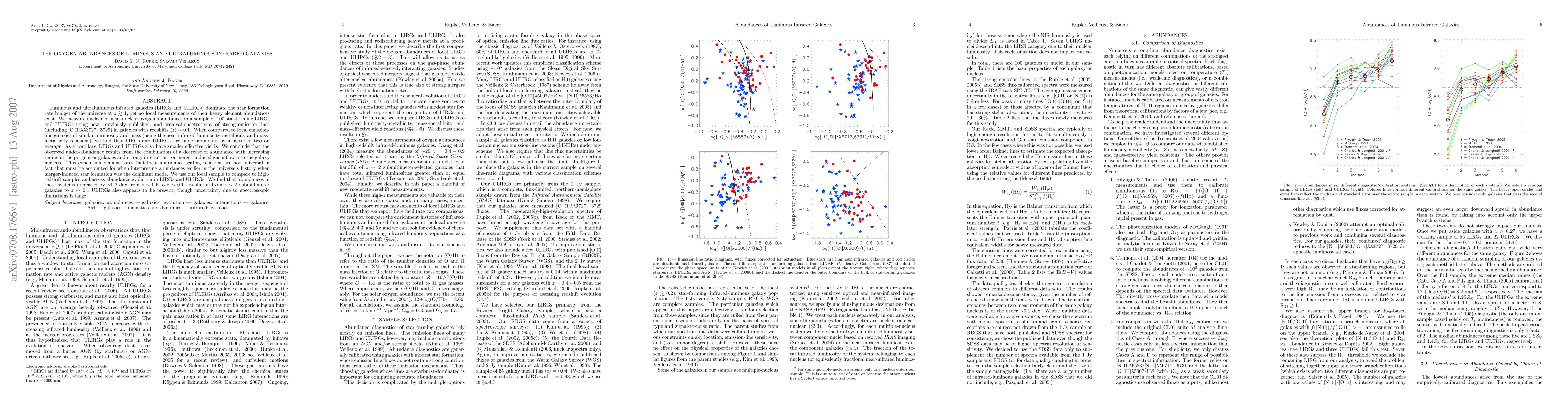 Researchers measured oxygen abundances in luminous and ultraluminous infrared galaxies, finding they were under-abundant by a factor of two compared to local emission-line galaxies, likely due to merger-induced gas inflow.
