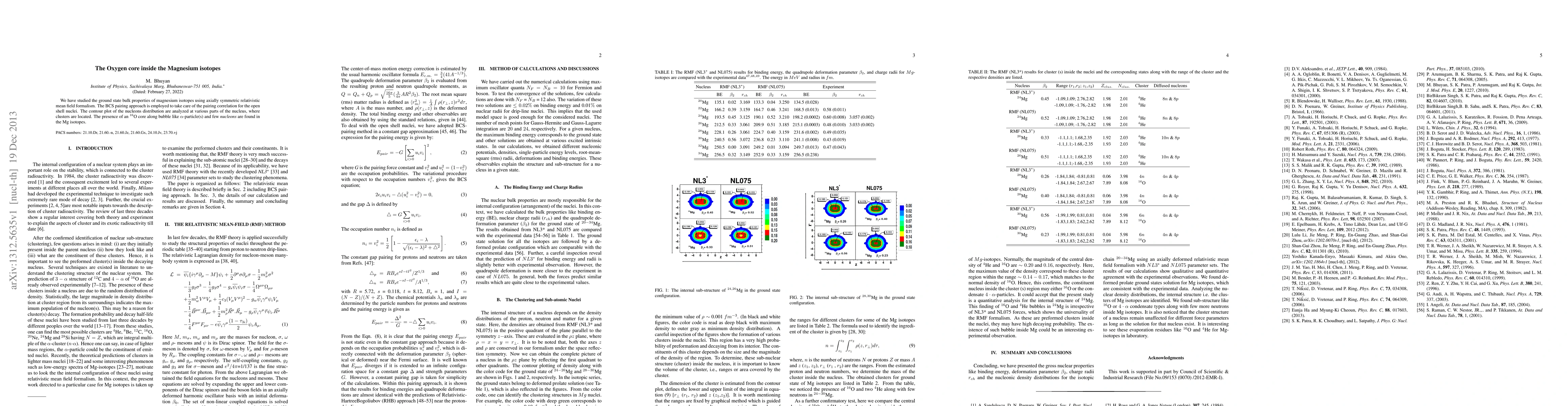 This study investigates the ground state properties of magnesium isotopes using relativistic mean field and BCS pairing approaches, revealing the presence of an $^{16}$O core surrounded by bubble-like $\alpha$-particles and additional nucleons within the nucleus.