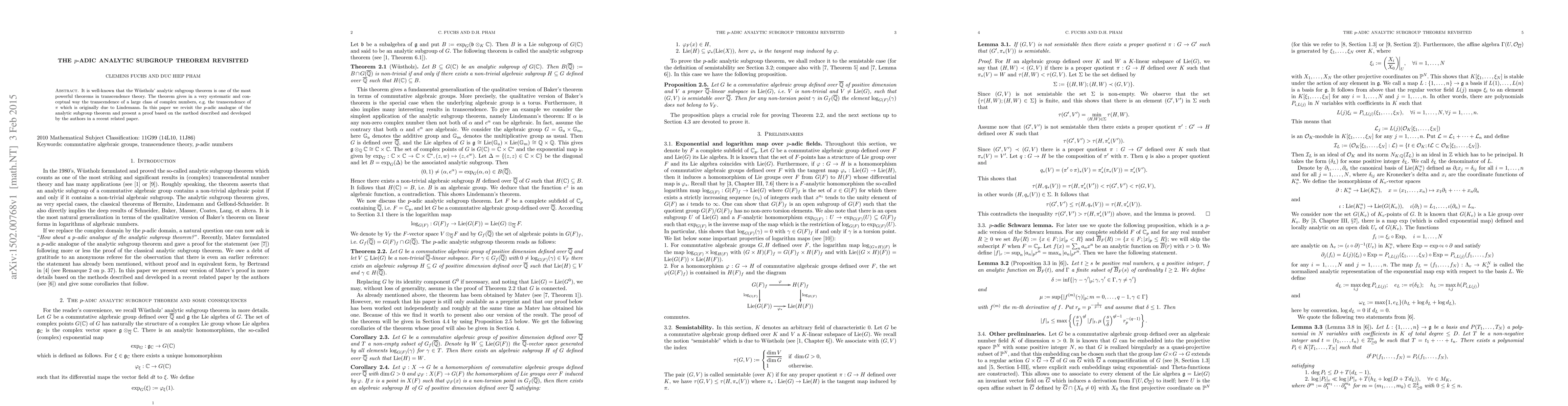 This paper revisits the $p$-adic analogue of Wüstholz's analytic subgroup theorem, providing a proof using methods developed in a recent related work, aiming to extend the theorem's transcendence results to $p$-adic numbers.