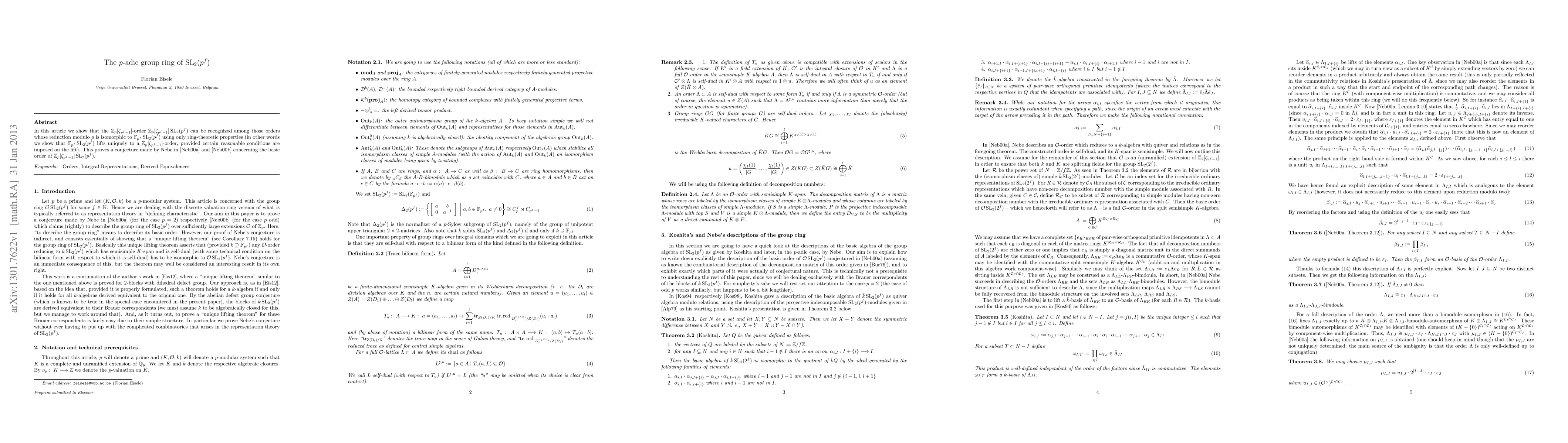 Researchers prove a conjecture about the p-adic group ring of SL_2(p^f), showing that it can be recognized using only ring-theoretic properties, with unique lifting to a Z_p[ε_{p^f-1}]-order under certain conditions.