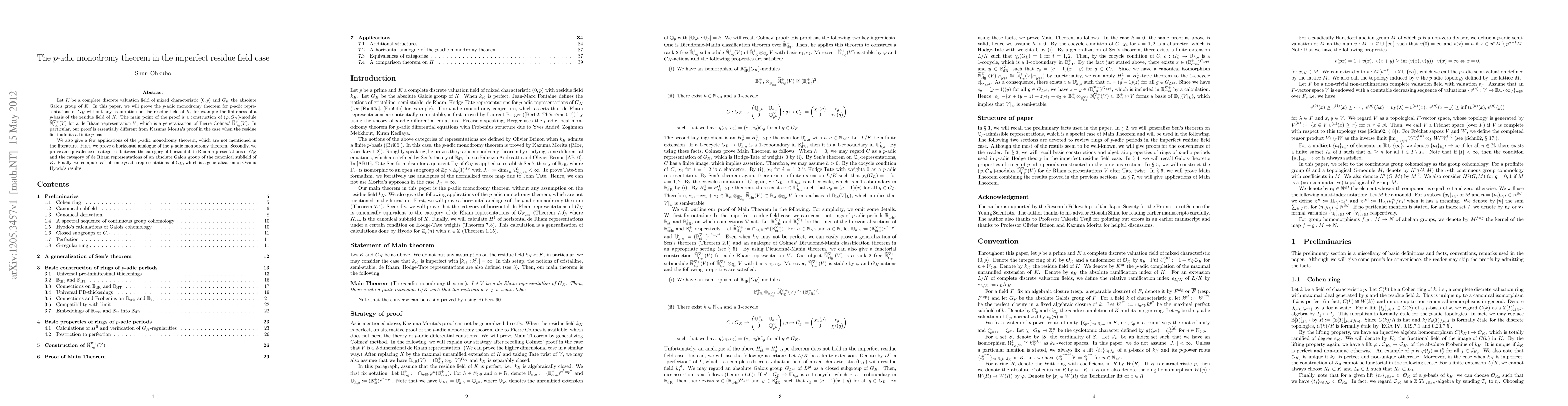Let K be a complete discrete valuation field of mixed characteristic (0,p) and G_K the absolute Galois group of K. In this paper, we will prove the p-adic monodromy theorem for p-adic representations of G_K without any assumption on the residue field of K, for example the finiteness of a p-basis of the residue field of K. The main point of the proof is a construction of (phi,G_K)-module Nrig^+(V) for a de Rham representation V, which is a generalization of Pierre Colmez' Nrig^+(V). In particular, our proof is essentially different from Kazuma Morita's proof in the case when the residue field admits a finite p-basis. We also give a few applications of the p-adic monodromy theorem, which are not mentioned in the literature. First, we prove a horizontal analogue of the p-adic monodromy theorem. Secondly, we prove an equivalence of categories between the category of horizontal de Rham representations of G_K and the category of de Rham representations of an absolute Galois group of the canonical subfield of K. Finally, we compute H^1 of some p-adic representations of G_K, which is a generalization of Osamu Hyodo's results.