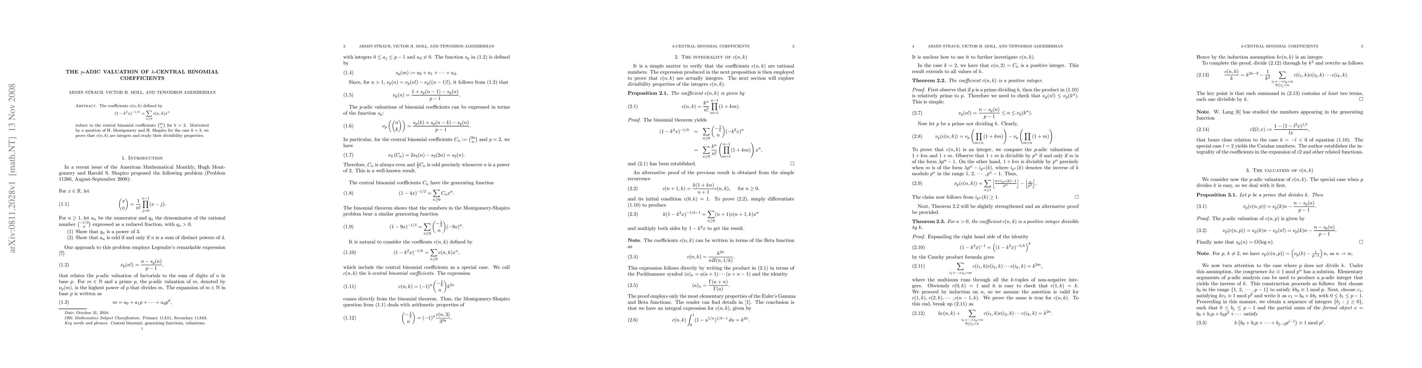 Researchers prove that k-central binomial coefficients are integers for k=3, studying their divisibility properties, a case inspired by H. Montgomery and H. Shapiro's question about the case k=2.