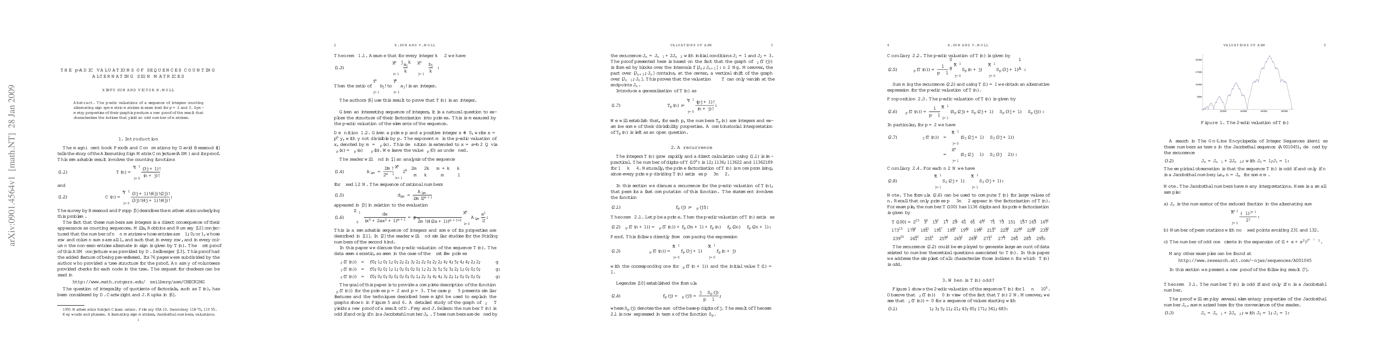 This paper investigates the p-adic valuations of a sequence T(n) counting alternating sign matrices for primes p=2 and p=3. It provides a new proof leveraging symmetry properties of their graphs to characterize the indices for which T(n) is odd.
