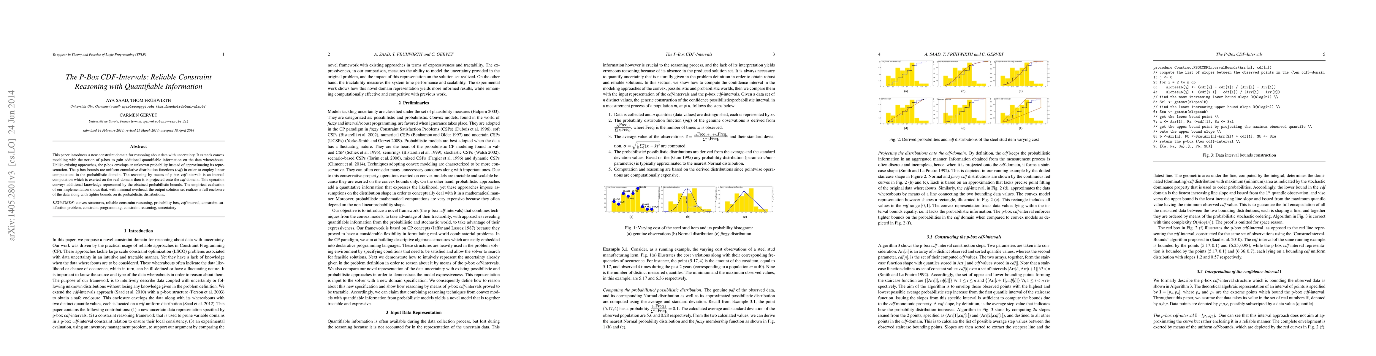This paper presents p-box CDF-intervals, a novel constraint domain for uncertain data reasoning. It introduces p-boxes, which envelop unknown probabilities, allowing for quantifiable data information using uniform cumulative distribution functions. The methodology employs linear computations in the probabilistic domain, resulting in interval computations that provide tighter probabilistic distribution bounds with minimal overhead.