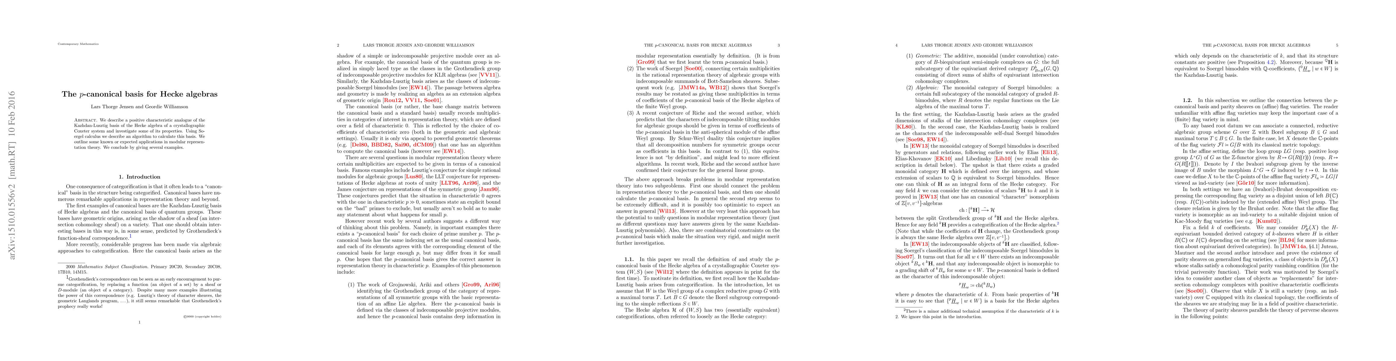 We describe a positive characteristic analogue of the Kazhdan-Lusztig basis of the Hecke algebra of a crystallographic Coxeter system and investigate some of its properties. Using Soergel calculus we describe an algorithm to calculate this basis. We outline some known or expected applications in modular representation theory. We conclude by giving several examples.
