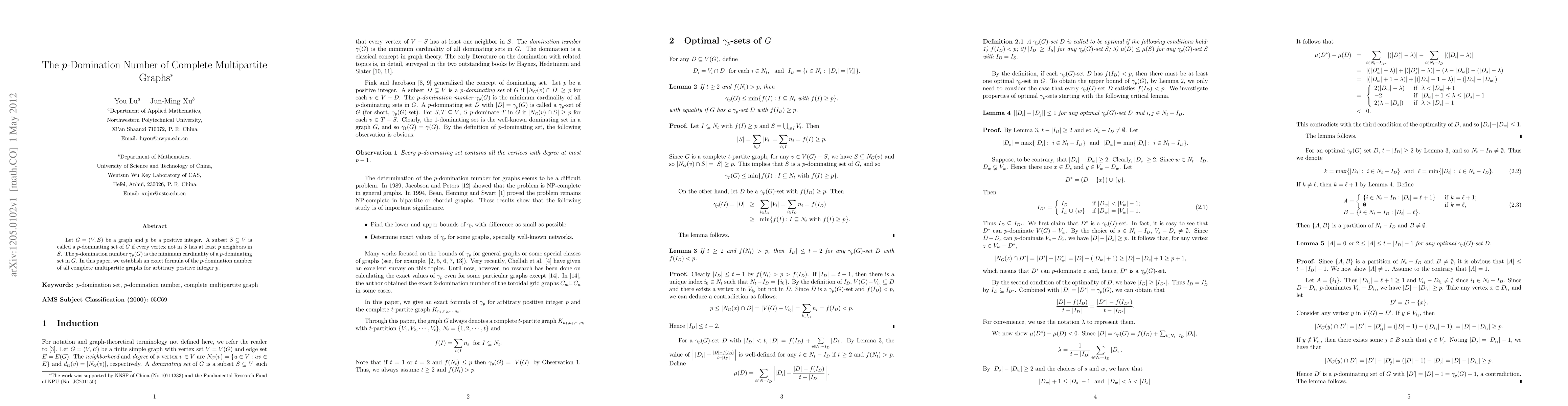 Let $G=(V,E)$ be a graph and $p$ a positive integer. A subset $S\subseteq V$ is called a $p$-dominating set of $G$ if every vertex not in $S$ has at least $p$ neighbors in $S$. The $p$-domination number is the minimum cardinality of a $p$-dominating set in $G$. In this paper, we establish an exact formula of the $p$-domination number of all complete multipartite graphs for arbitrary positive integer $p$.