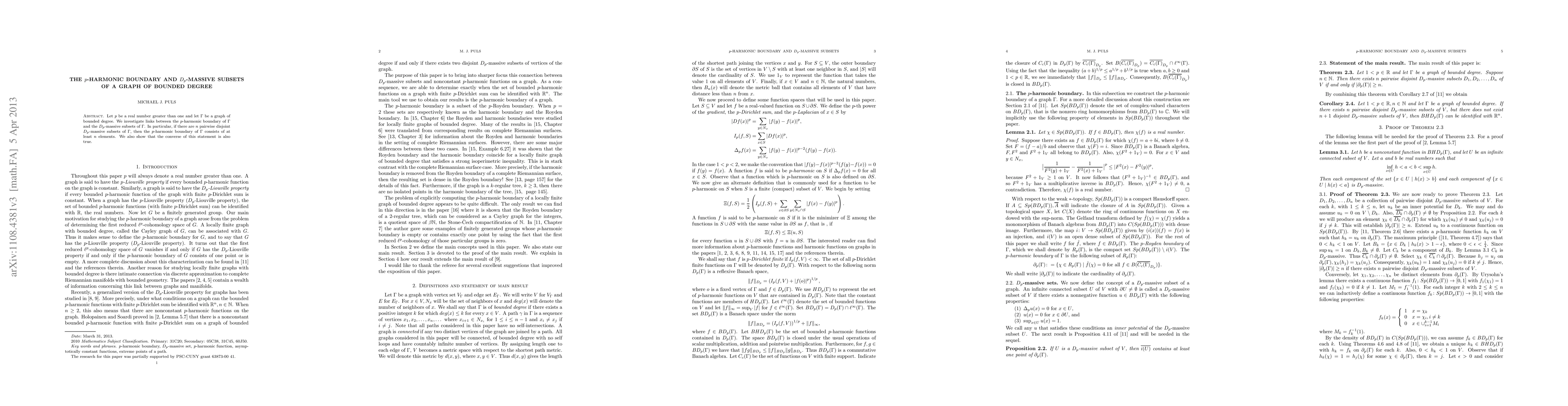This paper explores the relationship between the $p$-harmonic boundary and $D_p$-massive subsets in graphs of bounded degree, proving that the number of disjoint $D_p$-massive subsets corresponds to the number of elements in the $p$-harmonic boundary.