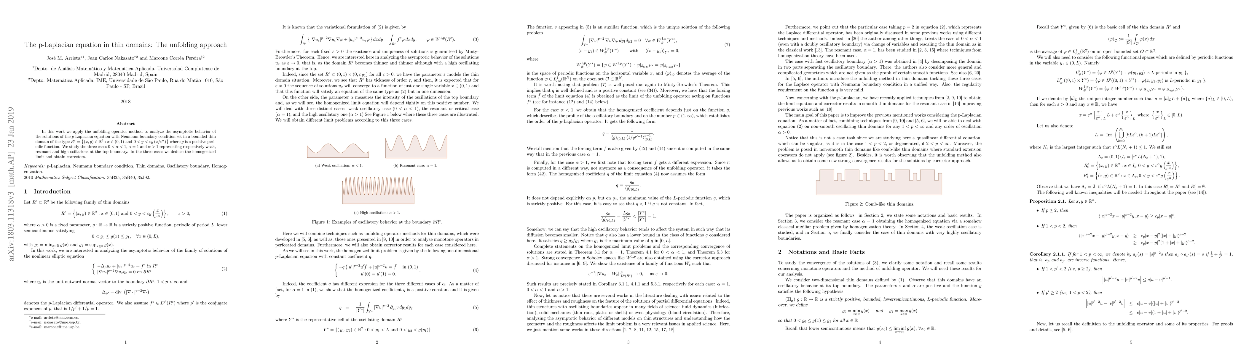 Researchers apply the unfolding operator method to study the p-Laplacian equation in thin domains with varying oscillations at the top boundary, revealing homogenized limits and correctors for different cases.