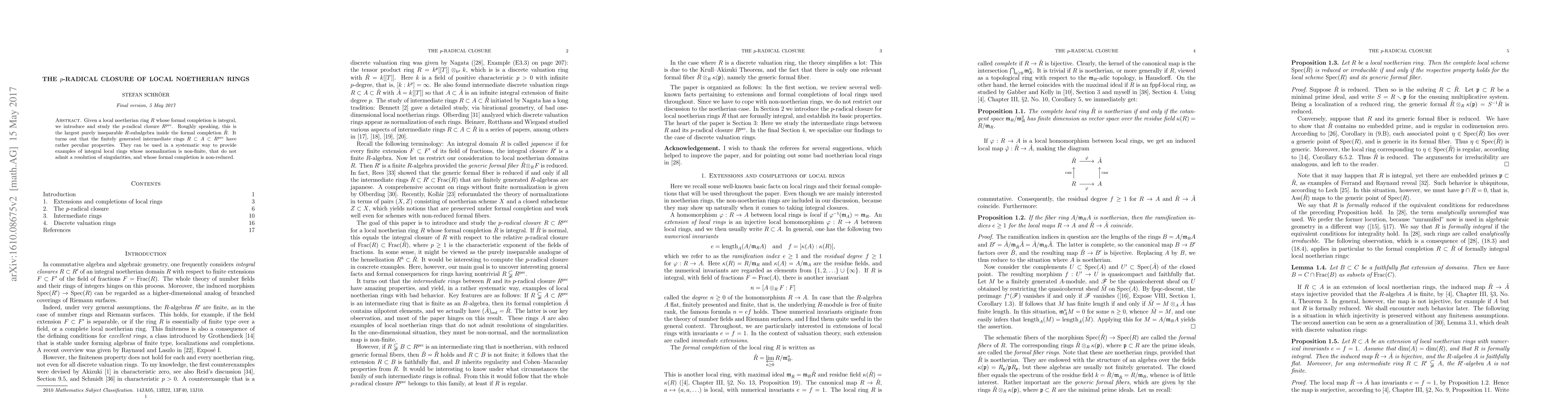This research paper introduces and studies the $p$-radical closure of local noetherian rings, exploring its properties and implications for integral local rings.