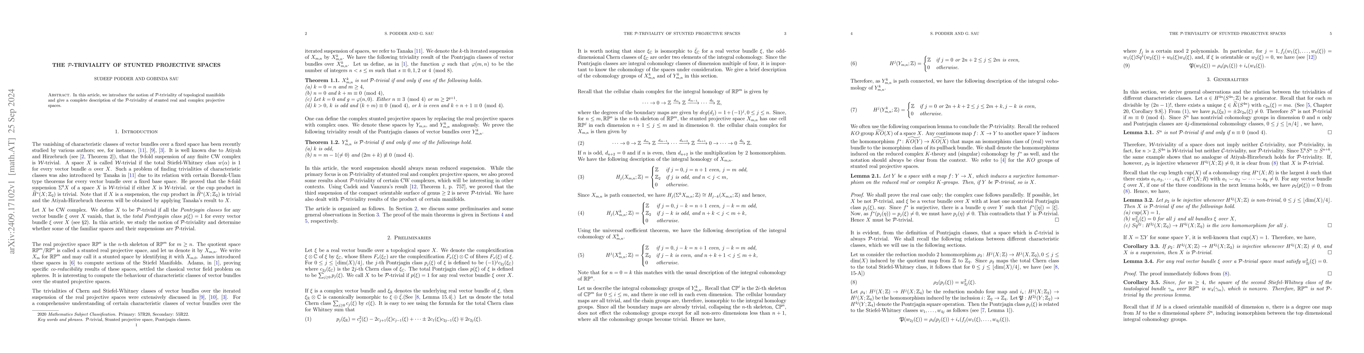 Summary: This paper defines $\mathcal P$-triviality for topological manifolds and provides a comprehensive analysis of its occurrence in stunted real and complex projective spaces.