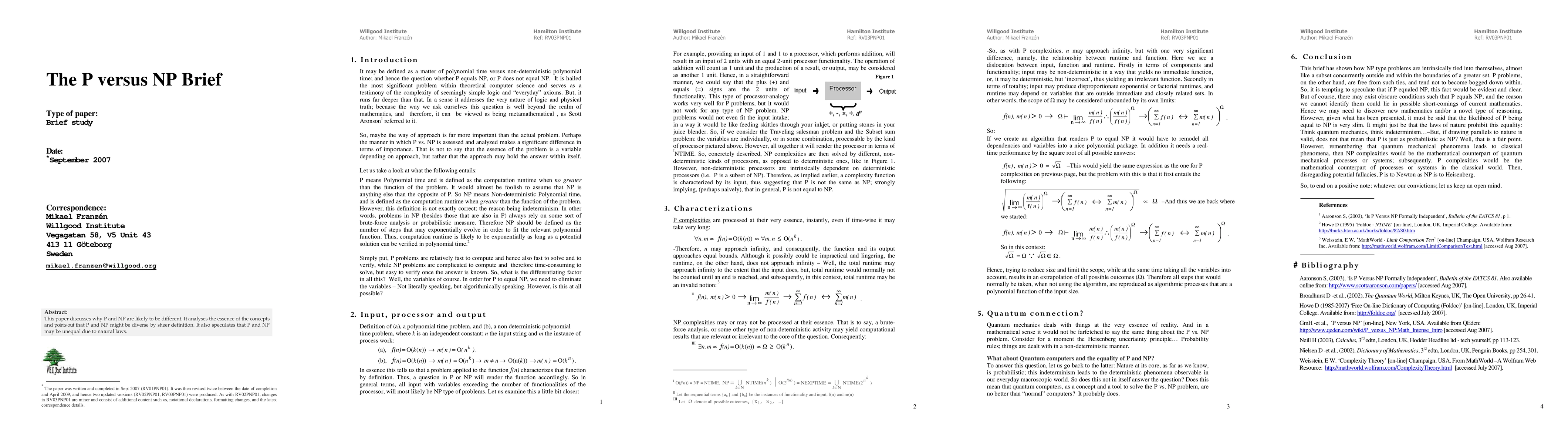 This paper discusses why P and NP are likely to be different. It analyses the essence of the concepts and points out that P and NP might be diverse by sheer definition. It also speculates that P and NP may be unequal due to natural laws.