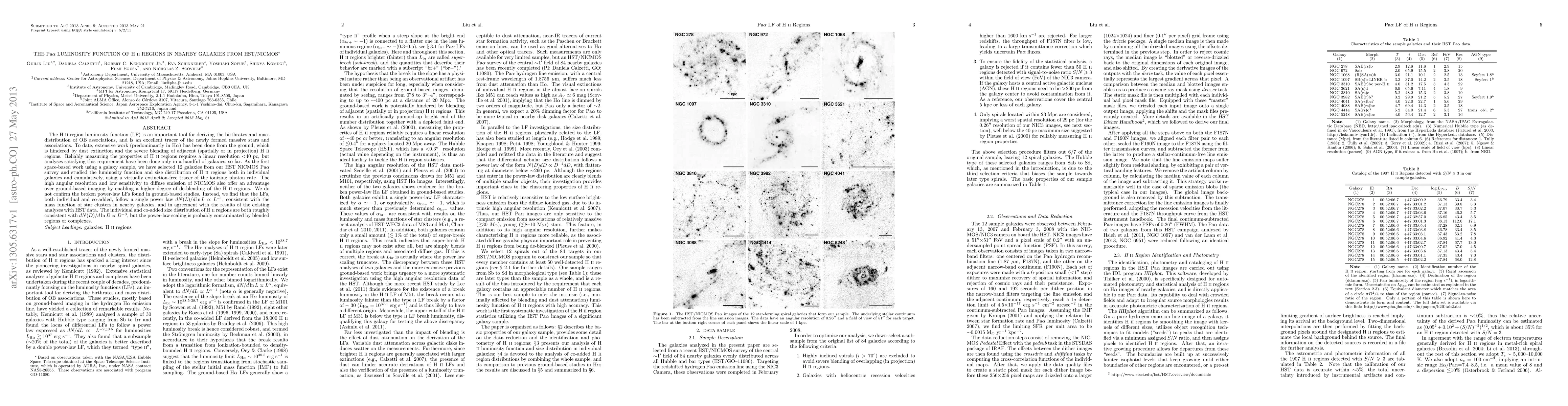 This study uses HST/NICMOS Paα observations to analyze the luminosity function (LF) of HII regions in 12 nearby galaxies, finding a single power-law LF consistent with the mass function of star clusters, contrasting with broken power-law LFs observed from ground-based data. The high resolution and low extinction of NICMOS allow for better de-blending of HII regions.