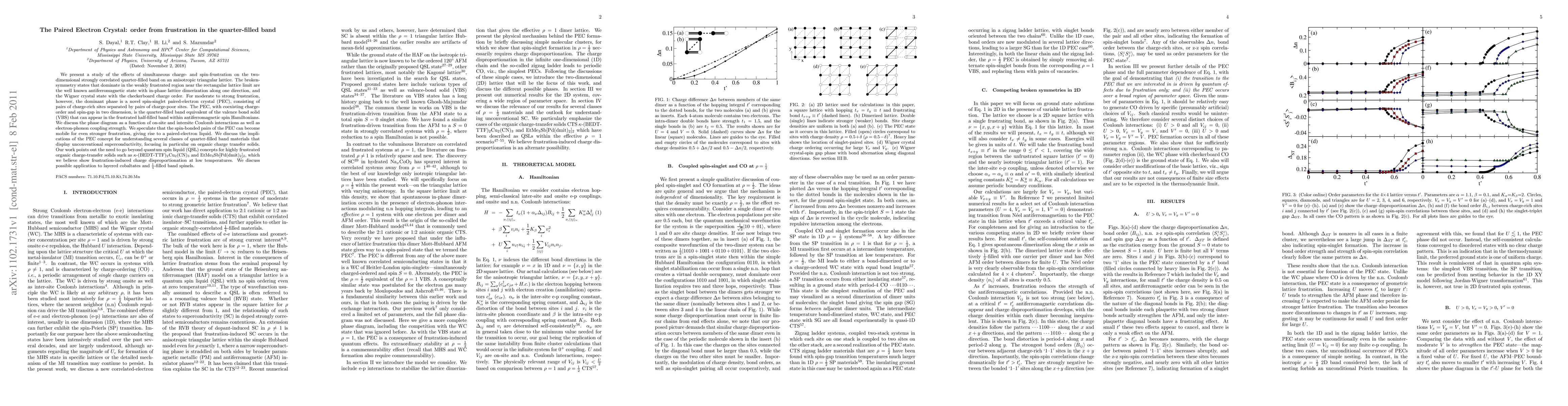 We present a study of the effects of simultaneous charge- and spin-frustration on the two-dimensional strongly correlated quarter-filled band on an anisotropic triangular lattice. The broken-symmetry states that dominate in the weakly frustrated region near the rectangular lattice limit are the well known antiferromagnetic state with in-phase lattice dimerization along one direction, and the Wigner crystal state with the checkerboard charge order. For moderate to strong frustration, however, the dominant phase is a novel spin-singlet paired-electron crystal (PEC), consisting of pairs of charge-rich sites separated by pairs of charge-poor sites. The PEC, with coexisting charge-order and spin-gap in two dimension, is the quarter-filled band equivalent of the valence bond solid (VBS) that can appear in the frustrated half-filled band within antiferromagnetic spin Hamiltonians. We discuss the phase diagram as a function of on-site and intersite Coulomb interactions as well as electron-phonon coupling strength. We speculate that the spin-bonded pairs of the PEC can become mobile for even stronger frustration, giving rise to a paired-electron liquid. We discuss the implications of the PEC concept for understanding several classes of quarter-filled band materials that display unconventional superconductivity, focusing in particular on organic charge transfer solids. Our work points out the need to go beyond quantum spin liquid (QSL) concepts for highly frustrated organic charge-transfer solids such as kappa-(BEDT-TTF)_2Cu_2(CN)_3 and EtMe_3Sb[Pd(dmit)_2]_2, which we believe show frustration-induced charge disproportionation at low temperatures. We discuss possible application to layered cobaltates and 1/4-filled band spinels.
