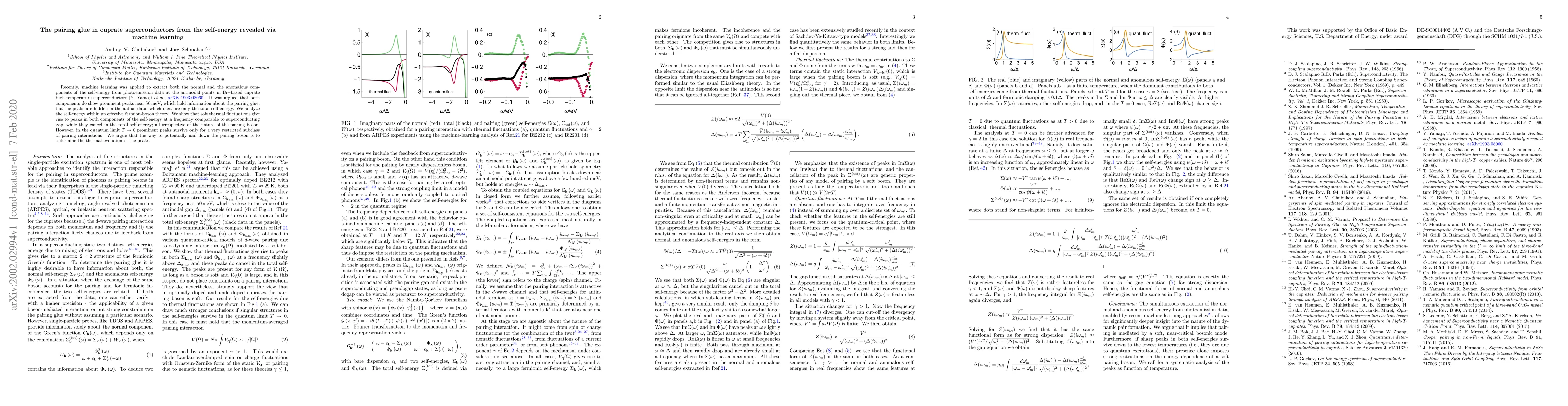 Recently, machine learning was applied to extract both the normal and the anomalous components of the self-energy from photoemission data at the antinodal points in Bi-based cuprate high-temperature superconductors [Y. Yamaji {\it et al.}, arXiv:1903.08060]. It was argued that both components do show prominent peaks near 50 meV, which hold information about the pairing glue, but the peaks are hidden in the actual data, which measure only the total self-energy. We analyze the self-energy within an effective fermion-boson theory. We show that soft thermal fluctuations give rise to peaks in both components of the self-energy at a frequency comparable to superconducting gap, while they cancel in the total self-energy; all irrespective of the nature of the pairing boson. However, in the quantum limit $T \to 0$ prominent peaks survive only for a very restricted subclass of pairing interactions. We argue that the way to potentially nail down the pairing boson is to determine the thermal evolution of the peaks.