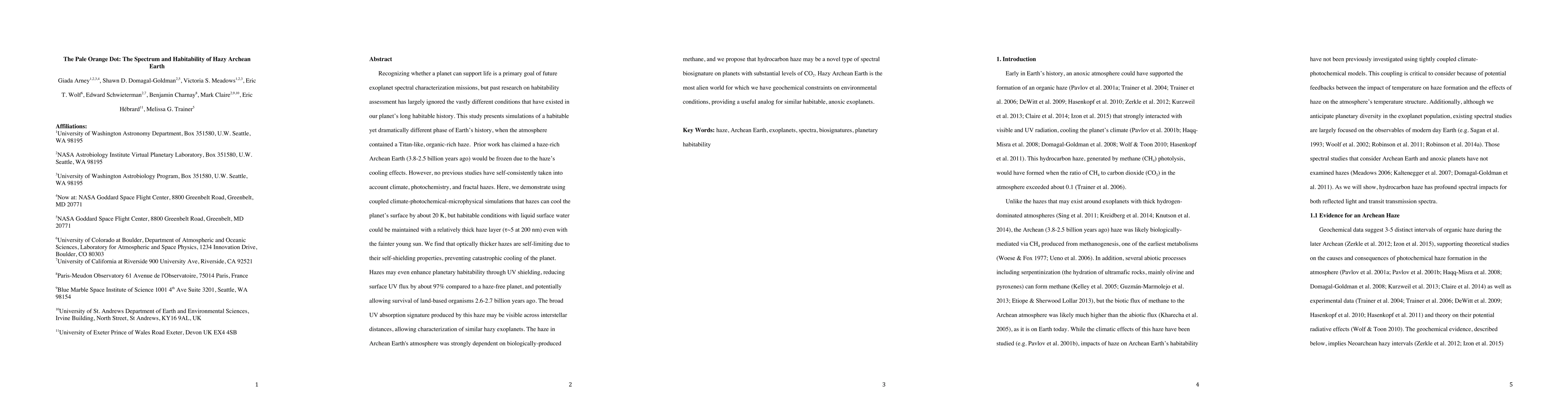 Recognizing whether a planet can support life is a primary goal of future exoplanet spectral characterization missions, but past research on habitability assessment has largely ignored the vastly different conditions that have existed in our planet's long habitable history. This study presents simulations of a habitable yet dramatically different phase of Earth's history, when the atmosphere contained a Titan-like organic-rich haze. Prior work has claimed a haze-rich Archean Earth (3.8-2.5 billion years ago) would be frozen due to the haze's cooling effects. However, no previous studies have self-consistently taken into account climate, photochemistry, and fractal hazes. Here, we demonstrate using coupled climate-photochemical-microphysical simulations that hazes can cool the planet's surface by about 20 K, but habitable conditions with liquid surface water could be maintained with a relatively thick haze layer (tau ~ 5 at 200 nm) even with the fainter young sun. We find that optically thicker hazes are self-limiting due to their self-shielding properties, preventing catastrophic cooling of the planet. Hazes may even enhance planetary habitability through UV shielding, reducing surface UV flux by about 97% compared to a haze-free planet, and potentially allowing survival of land-based organisms 2.6.2.7 billion years ago. The broad UV absorption signature produced by this haze may be visible across interstellar distances, allowing characterization of similar hazy exoplanets. The haze in Archean Earth's atmosphere was strongly dependent on biologically-produced methane, and we propose hydrocarbon haze may be a novel type of spectral biosignature on planets with substantial levels of CO2. Hazy Archean Earth is the most alien world for which we have geochemical constraints on environmental conditions, providing a useful analog for similar habitable, anoxic exoplanets.