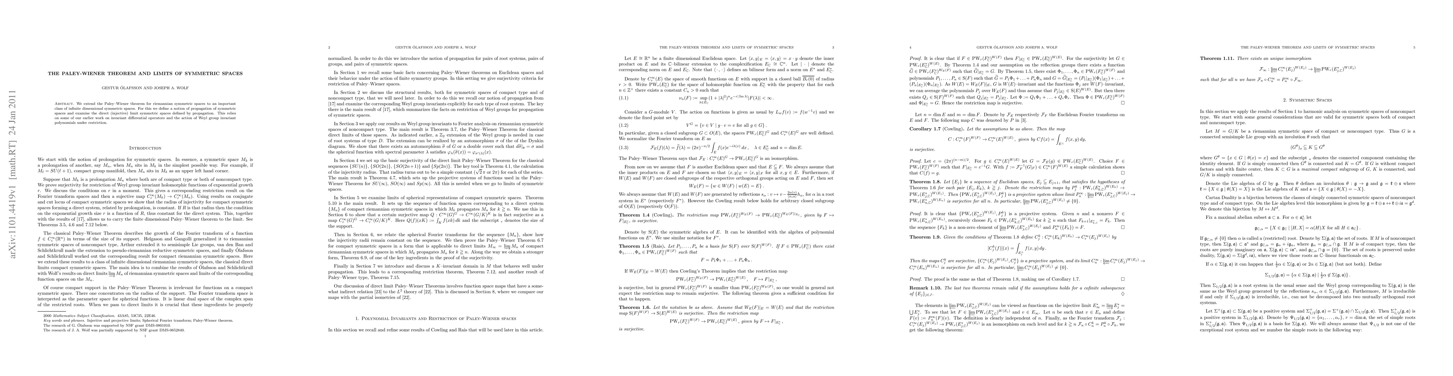 Summary: This paper extends the Paley-Wiener theorem to infinite dimensional symmetric spaces by defining a notion of propagation and examining direct limit symmetric spaces, building on previous work on invariant differential operators and Weyl group invariant polynomials.