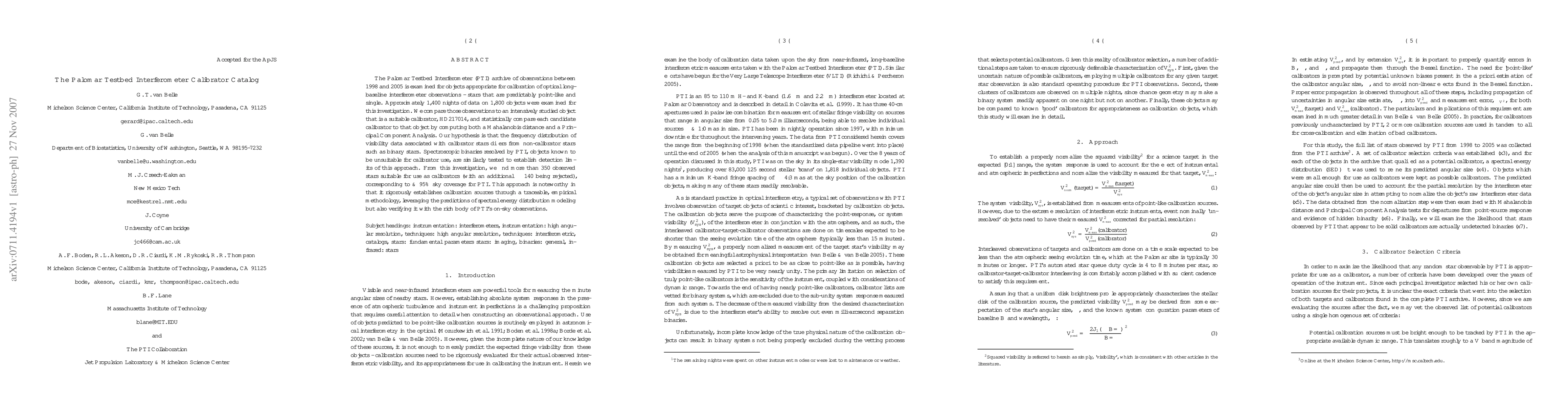 The Palomar Testbed Interferometer (PTI) catalog identifies over 350 stars suitable for calibrating optical long-baseline interferometers, based on rigorous statistical analysis comparing PTI data to a known calibrator, HD217014, and excluding binary stars. This method ensures $\gtrsim 95\%$ sky coverage for PTI calibration sources.