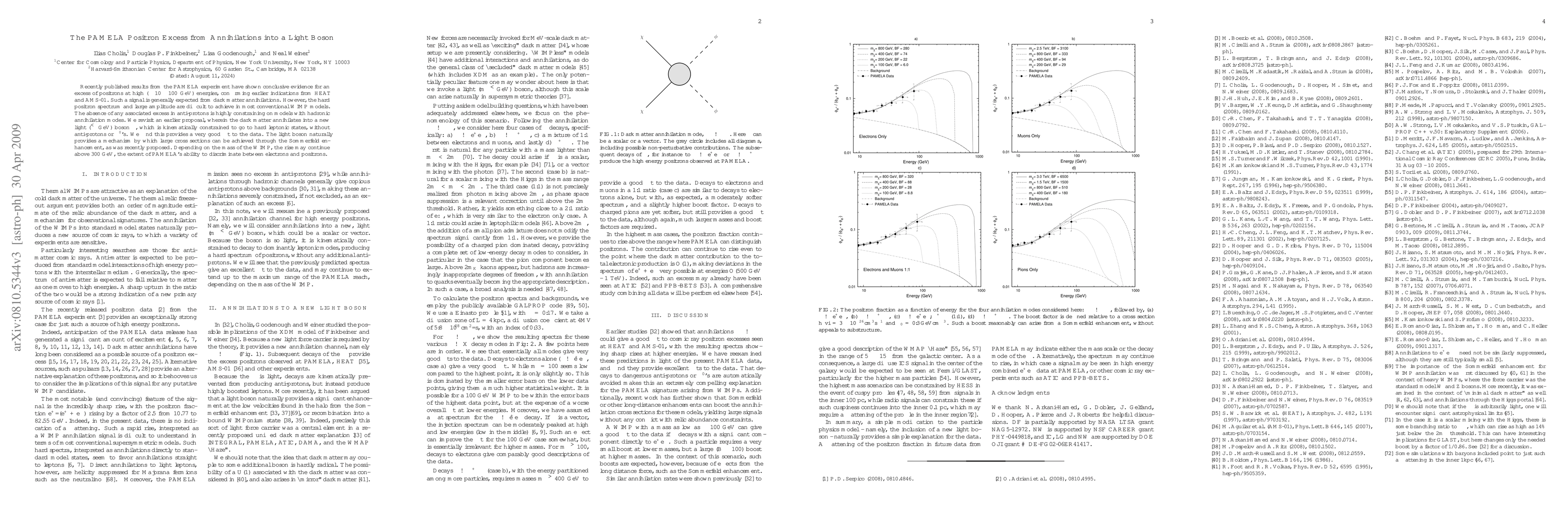 The PAMELA experiment detected a high-energy positron excess, challenging conventional dark matter models. A proposed solution involves dark matter annihilating into a light boson that decays into hard leptonic states, fitting the observed positron spectrum without producing anti-protons.