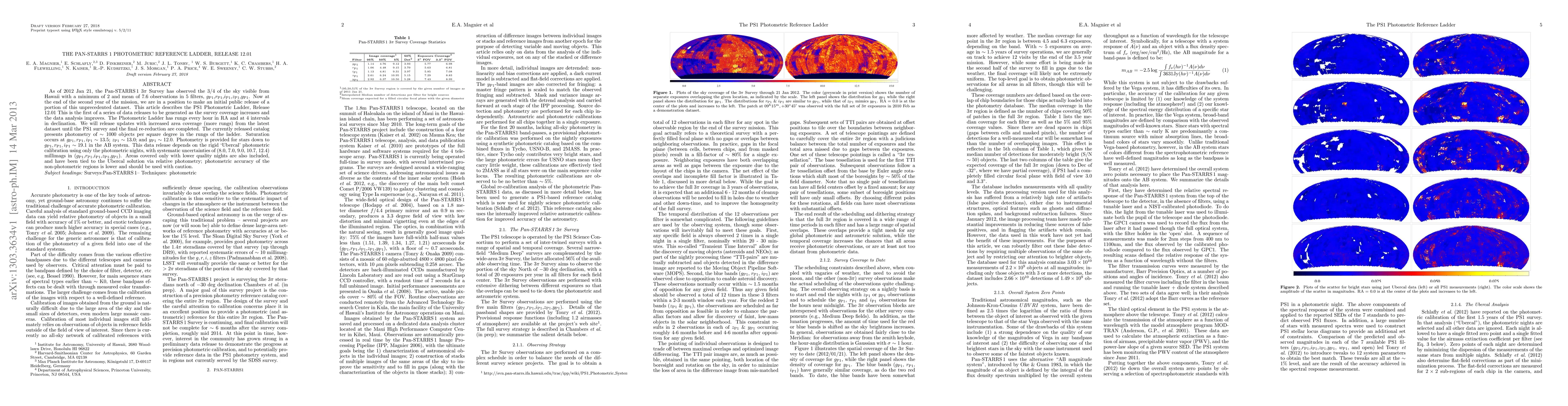 The Pan-STARRS 1 Photometric Reference Ladder, Release 12.0, provides initial public access to a portion of the Pan-STARRS 1 3π Survey dataset, offering photometry for approximately 1000 objects per square degree with a rigid Ubercal calibration, though lower quality regions have reduced accuracy.