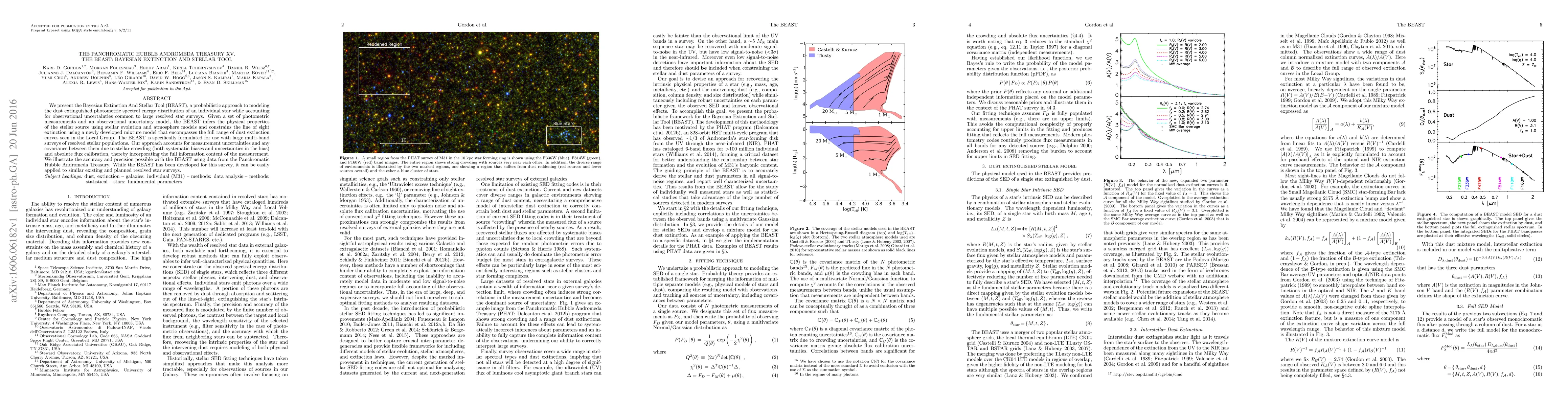 The BEAST is a probabilistic tool for modeling dust extinction and stellar properties in resolved star surveys, utilizing stellar evolution and atmosphere models to infer physical properties from photometric data while accounting for observational uncertainties. The BEAST's mixture model for extinction curves enhances its applicability to large multi-band surveys like the Panchromatic Hubble Andromeda Treasury.