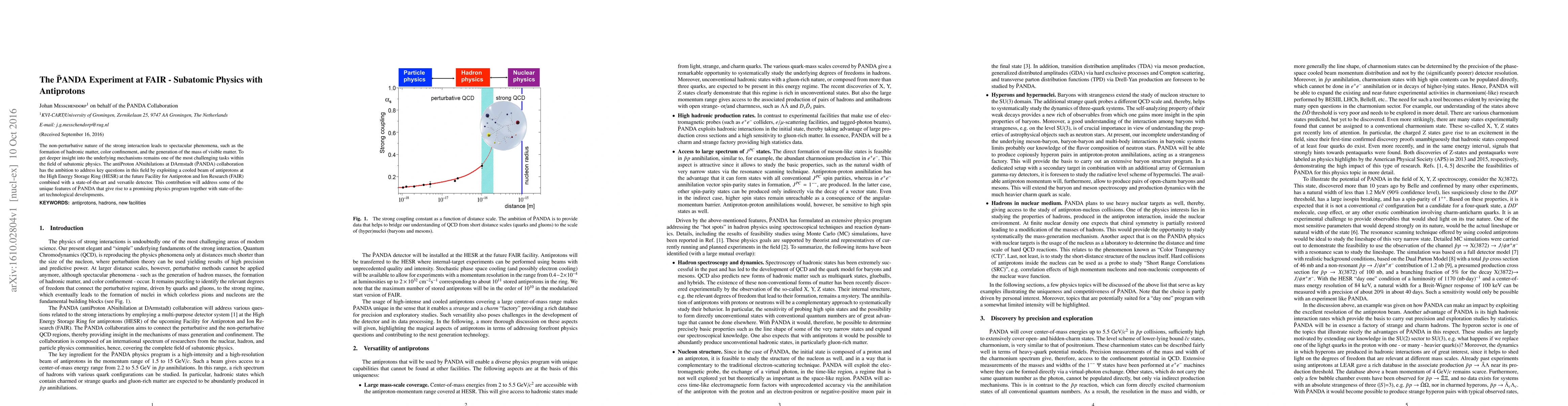 The PANDA experiment at FAIR aims to explore fundamental aspects of the strong interaction using a cooled antiproton beam, seeking to understand phenomena like color confinement and mass generation. It leverages advanced technology and a versatile detector to address key questions in subatomic physics.