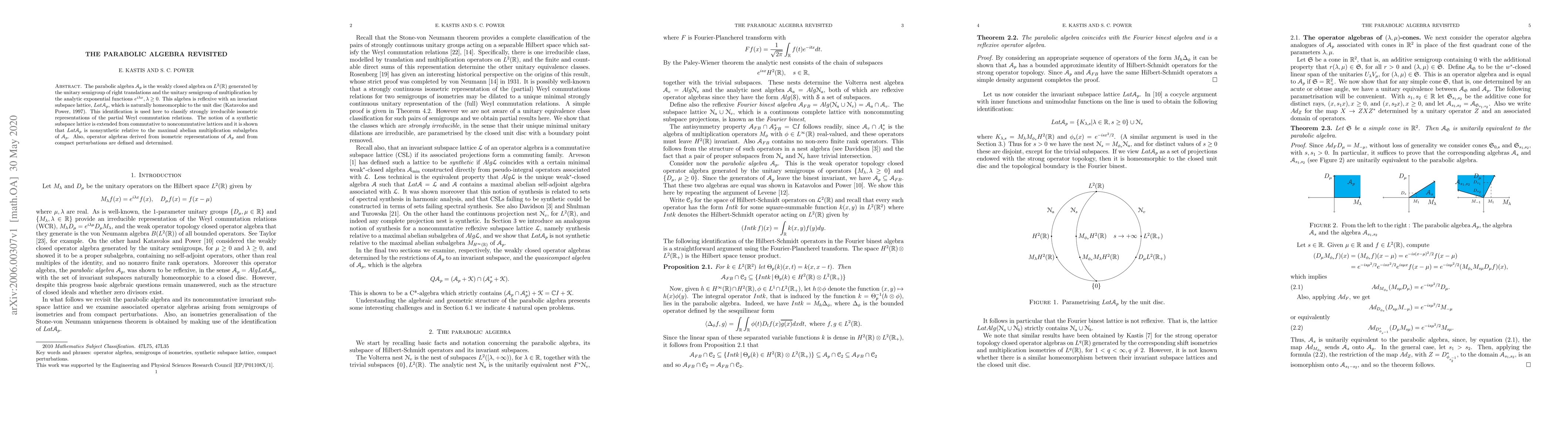 Researchers revisit the parabolic algebra A_p, exploring its properties and applications in operator algebras, including classification of irreducible representations and identification with a unit disc lattice.
