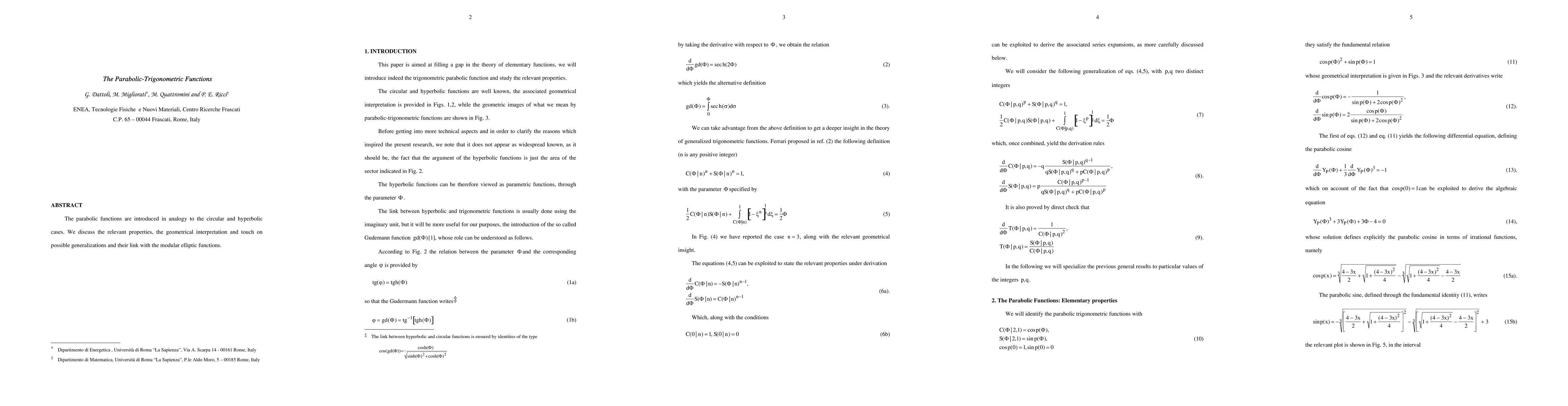 This paper introduces parabolic-trigonometric functions, discussing their properties, geometrical interpretation, and possible generalizations, with a focus on their link to modular elliptic functions.