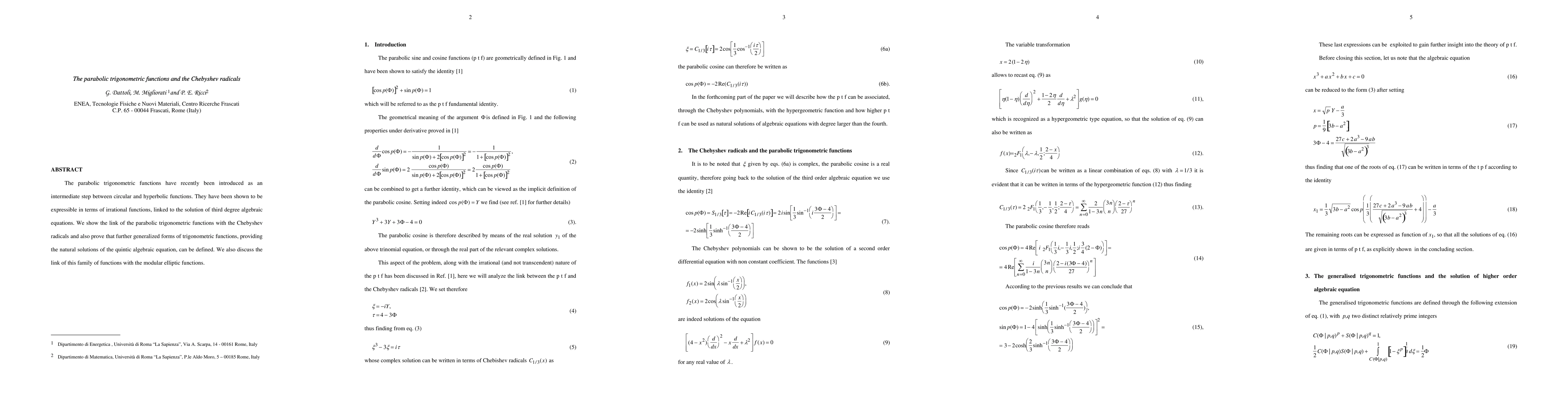 This paper establishes a link between parabolic trigonometric functions and Chebyshev radicals, providing new insights into the solution of third-degree algebraic equations.