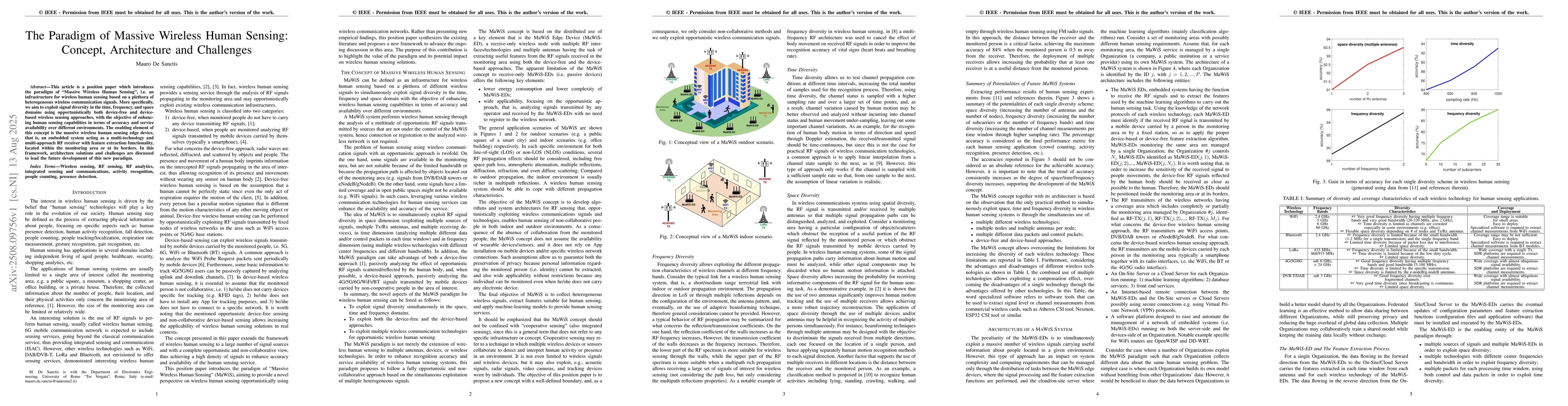 This article is a position paper which introduces the paradigm of ``Massive Wireless Human Sensing'', i.e. an infrastructure for wireless human sensing based on a plethora of heterogeneous wireless communication signals. More specifically, we aim to exploit signal diversity in the time, frequency, and space domains using opportunistically both device-free and device-based wireless sensing approaches, with the objective of enhancing human sensing capabilities in terms of accuracy and service availability over different environments. The enabling element of this concept is the massive wireless human sensing edge device, that is, an embedded system acting as a multi-technology and multi-approach RF receiver with feature extraction functionality, located within the monitoring area or at its borders. In this framework, architecture solutions and challenges are discussed to lead the future development of this new paradigm.