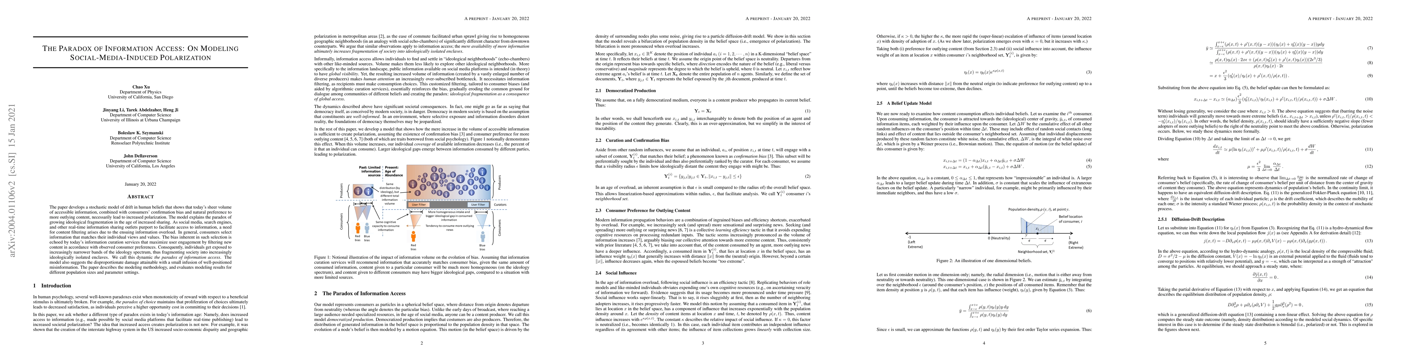 The paper develops a stochastic model of drift in human beliefs that shows that today's sheer volume of accessible information, combined with consumers' confirmation bias and natural preference to more outlying content, necessarily lead to increased polarization. The model explains the paradox of growing ideological fragmentation in the age of increased sharing. As social media, search engines, and other real-time information sharing outlets purport to facilitate access to information, a need for content filtering arises due to the ensuing information overload. In general, consumers select information that matches their individual views and values. The bias inherent in such selection is echoed by today's information curation services that maximize user engagement by filtering new content in accordance with observed consumer preferences. Consequently, individuals get exposed to increasingly narrower bands of the ideology spectrum, thus fragmenting society into increasingly ideologically isolated enclaves. We call this dynamic the paradox of information access. The model also suggests the disproportionate damage attainable with a small infusion of well-positioned misinformation. The paper describes the modeling methodology, and evaluates modeling results for different population sizes and parameter settings.