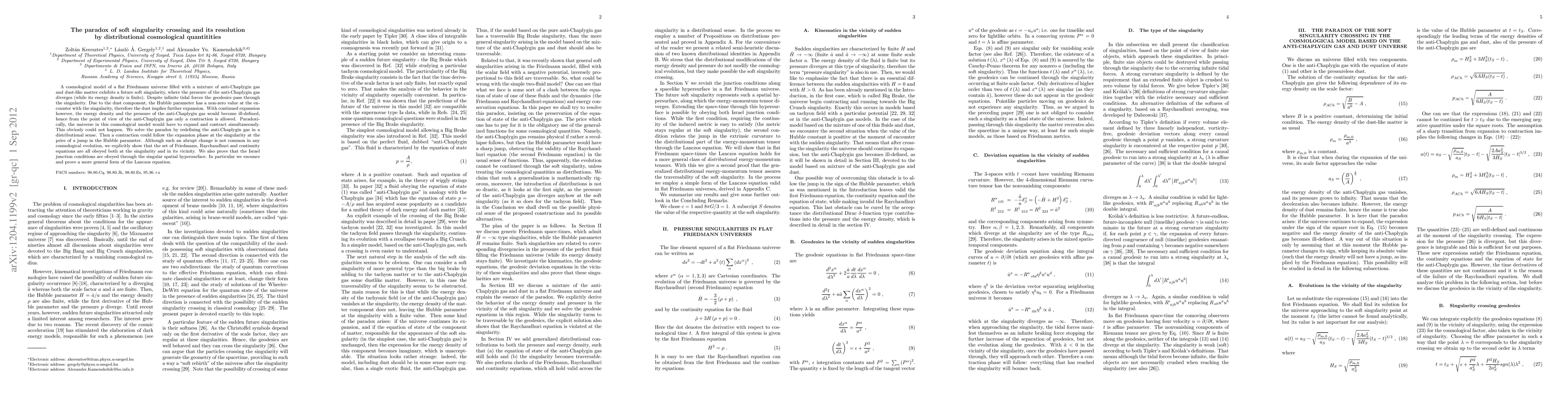 Researchers propose a solution to the paradox of soft singularity crossing in cosmology by redefining anti-Chaplygin gas in a distributional sense, allowing for both expansion and contraction simultaneously.