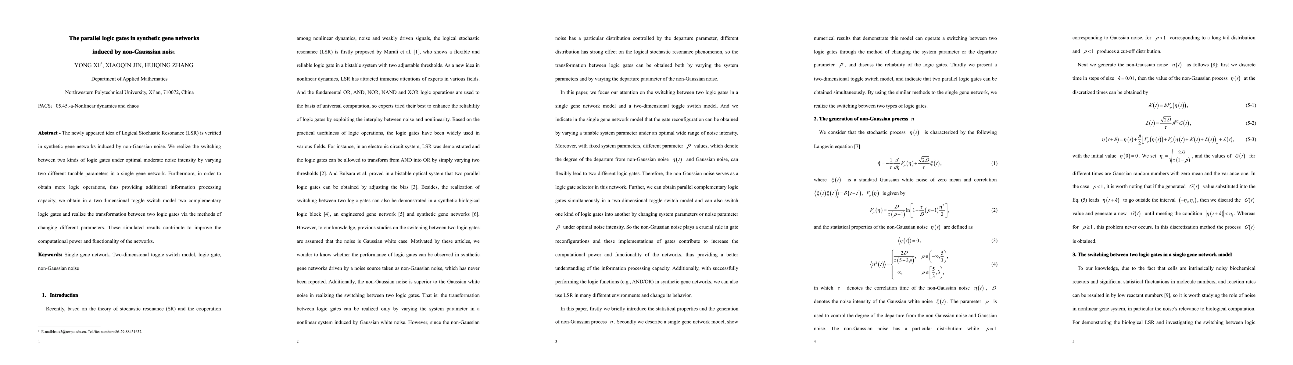This paper verifies the concept of Logical Stochastic Resonance (LSR) in synthetic gene networks affected by non-Gaussian noise, demonstrating the ability to switch between different logic gates by adjusting parameters, thereby enhancing the network's computational power and functionality. The study also introduces two complementary logic gates in a two-dimensional toggle switch model, showcasing the transformation between them through parameter changes.