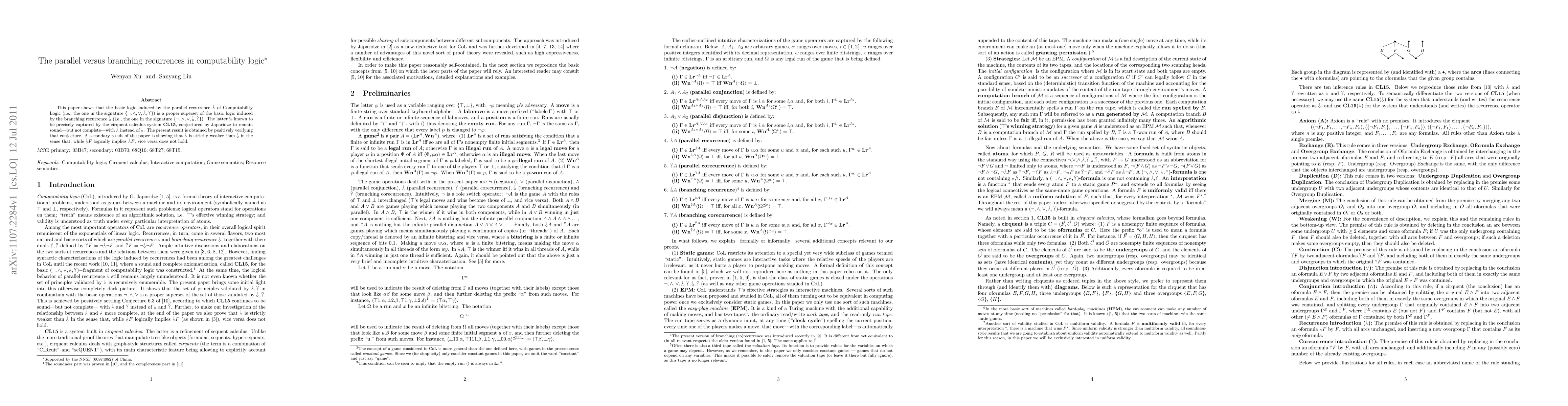 This paper shows that the basic logic induced by the parallel recurrence of Computability Logic is a proper superset of the basic logic induced by the branching recurrence. The latter is known to be precisely captured by the cirquent calculus system CL15, conjectured by Japaridze to remain sound---but not complete---with parallel recurrence instead of branching recurrence. The present result is obtained by positively verifying that conjecture. A secondary result of the paper is showing that parallel recurrence is strictly weaker than branching recurrence in the sense that, while the latter logically implies the former, vice versa does not hold.