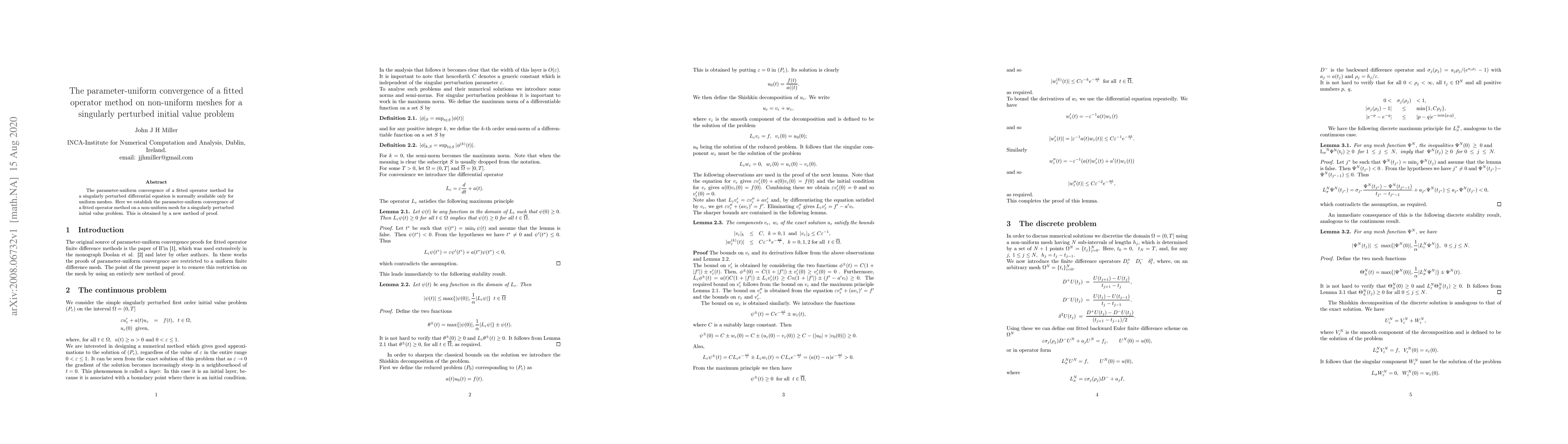The parameter-uniform convergence of a fitted operator method for a singularly perturbed differential equation is normally available only for uniform meshes. Here we establish the parameter-uniform convergence of a fitted operator method on a non-uniform mesh for a singularly perturbed initial value problem. This is obtained by a new method of proof.
