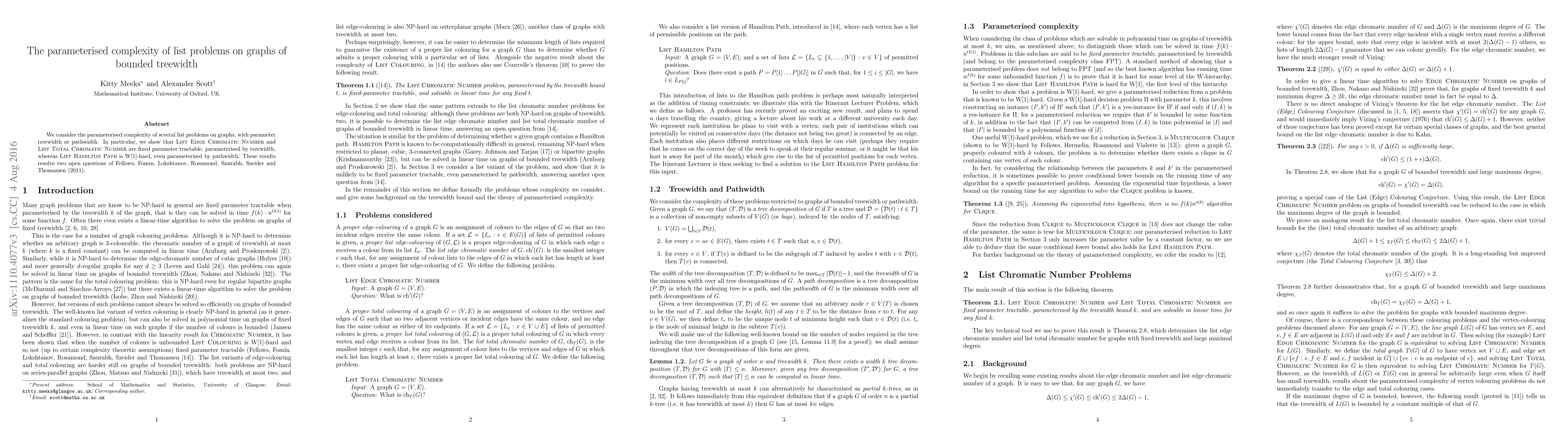 This paper investigates the parameterised complexity of list problems on graphs, focusing on treewidth and pathwidth. It demonstrates that List Edge Chromatic Number and List Total Chromatic Number are fixed parameter tractable when parameterised by treewidth, while List Hamilton Path is W[1]-hard, even with pathwidth as the parameter.