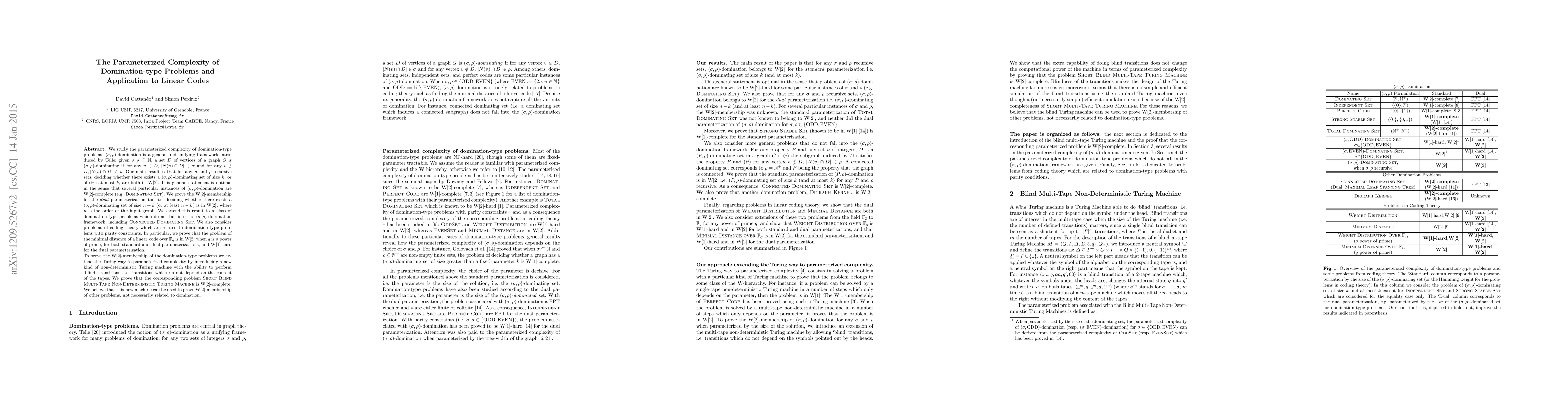 We study the parameterized complexity of domination-type problems. (sigma,rho)-domination is a general and unifying framework introduced by Telle: a set D of vertices of a graph G is (sigma,rho)-dominating if for any v in D, |N(v)\cap D| in sigma and for any $v\notin D, |N(v)\cap D| in rho. We mainly show that for any sigma and rho the problem of (sigma,rho)-domination is W[2] when parameterized by the size of the dominating set. This general statement is optimal in the sense that several particular instances of (sigma,rho)-domination are W[2]-complete (e.g. Dominating Set). We also prove that (sigma,rho)-domination is W[2] for the dual parameterization, i.e. when parameterized by the size of the dominated set. We extend this result to a class of domination-type problems which do not fall into the (sigma,rho)-domination framework, including Connected Dominating Set. We also consider problems of coding theory which are related to domination-type problems with parity constraints. In particular, we prove that the problem of the minimal distance of a linear code over Fq is W[2] for both standard and dual parameterizations, and W[1]-hard for the dual parameterization. To prove W[2]-membership of the domination-type problems we extend the Turing-way to parameterized complexity by introducing a new kind of non deterministic Turing machine with the ability to perform `blind' transitions, i.e. transitions which do not depend on the content of the tapes. We prove that the corresponding problem Short Blind Multi-Tape Non-Deterministic Turing Machine is W[2]-complete. We believe that this new machine can be used to prove W[2]-membership of other problems, not necessarily related to domination
